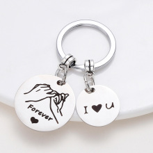 I Love You To The Moon and Back 月亮不锈钢圆牌钥匙扣刻字家庭