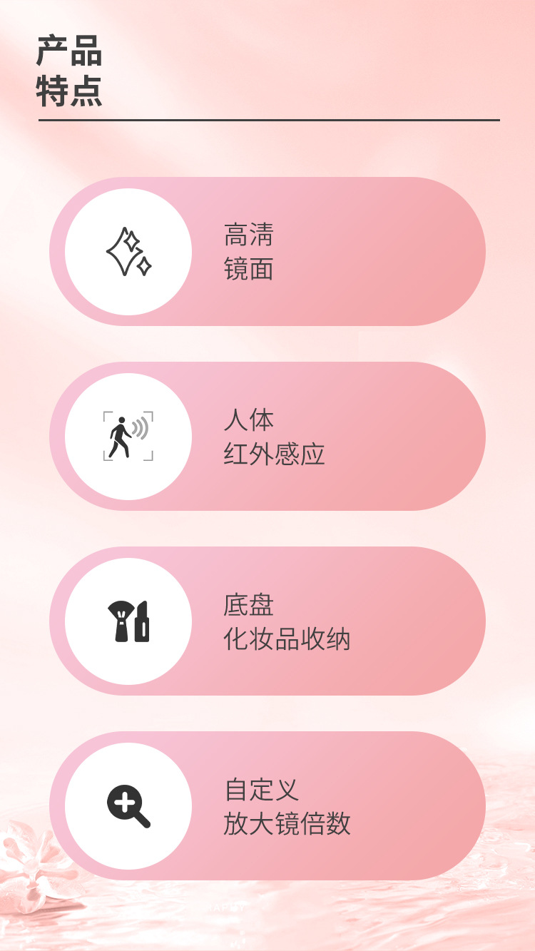 | Especificaciones | Blanco/Rosa espejo plano/5X aumento/7X magnificación |