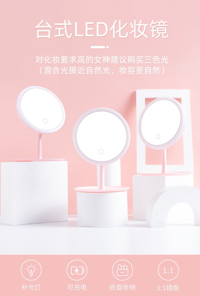 | Tamaño | Espejo de maquillaje de tres colores recargable |
