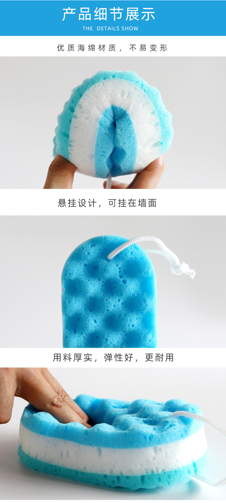 Esponja de baño para adultos de color de helado esponja de baño para adultos esponja de baño de tres capas de esponja de baño de espuma