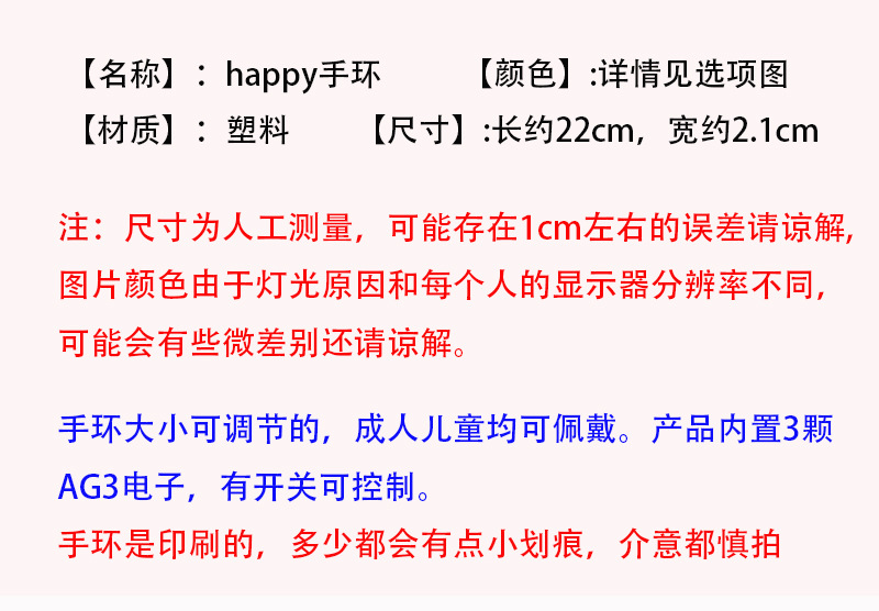 Creativo feliz pulsera luminosa flash pulsera luminoso concierto danza rendimiento accesorios reloj de juguete para niños