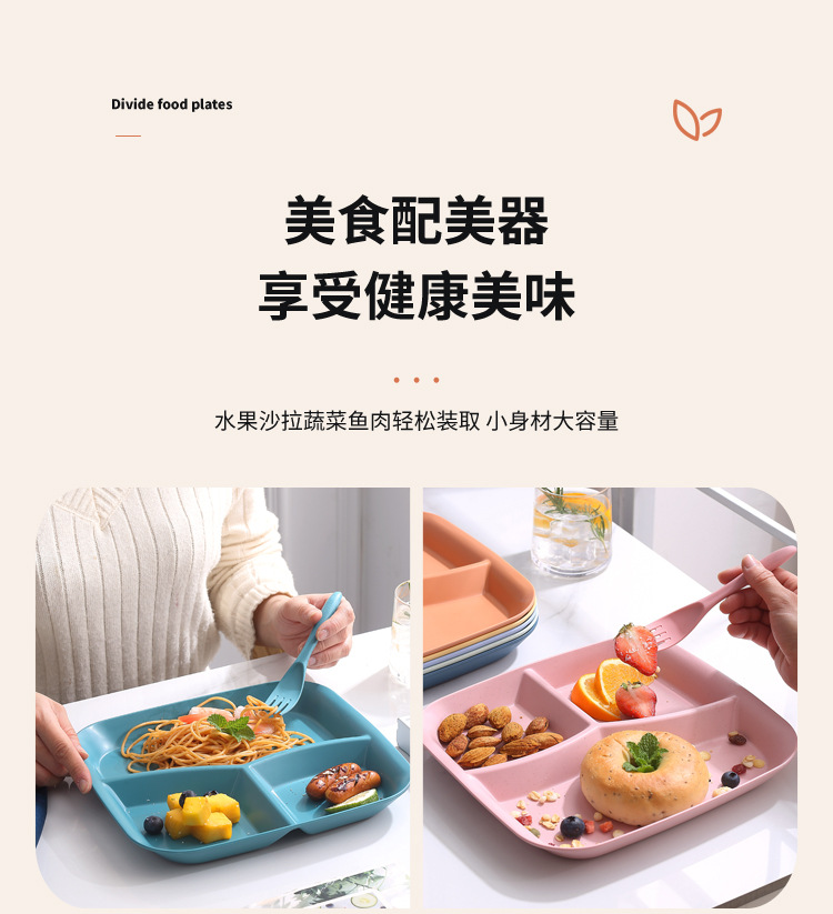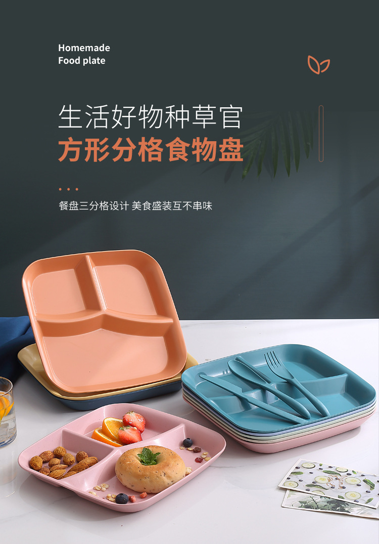 Estilo nórdico comida de una persona que reduce la grasa placa dividida de tres rejillas placa dividida placa merienda placa estudiante trabajo comida vajilla