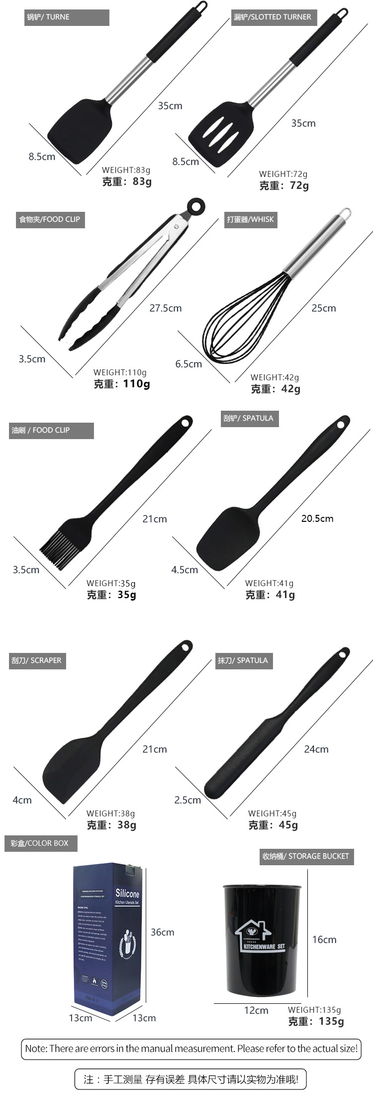 | Tamaño | Juego de utensilios de cocina de silicona de 15 piezas (negro),Juego de utensilios de cocina de silicona de 15 piezas (blanco),Juego de utensilios de cocina de silicona de 15 piezas (gris),Juego de utensilios de cocina de silicona de 15 piezas (caqui) |
