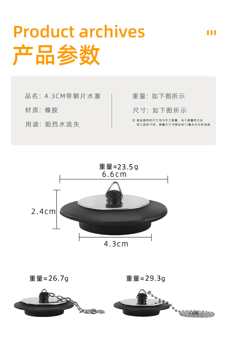 | Especificaciones | Tetón de agua de 4.3CM sin cadena,4.3 tapón de agua con cadena de 10cm,Tocón de agua de 4.3CM con cadena de 40CM |