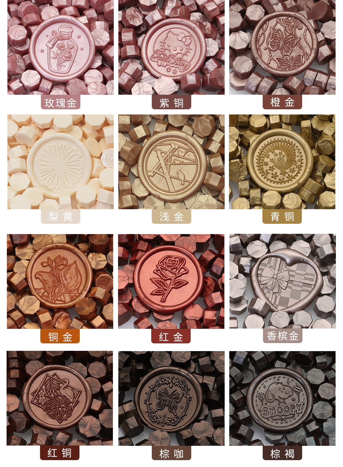| Color | Paquete 1 (patrón de Nota de Pedido, color de cera por defecto Jade, Rosa naranja, Taro púrpura),Paquete 2 (patrón de Nota de Pedido, color de la cera por defecto gris azul, mostaza, Oro),Paquete 3 (patrón de Nota de Pedido, color de cera por defecto verde tierno, piel de albaricoque, púrpura claro),Paquete 4 (patrón de Nota de Pedido, color de cera predeterminado azul agua, azul, oro rojo),Paquete 5 (patrón de nota de pedido, color predeterminado de cera: verde pino, azul marino, rojo púrpura),Paquete 6 (patrón de nota de pedido, color predeterminado de cera verde oscuro, azul cielo estrellado, naranja fresca),Paquete 7 (patrón de Nota de Pedido, color de cera predeterminado amarillo claro, menta, polvo de humo),Paquete 8 (patrón de Nota de Pedido, color de cera por defecto oro noble, oro champán, oro real),Paquete 9 (orden nota patrón, cera por defecto color blanco perla, verde, rosa),Paquete Diez (Por favor, especifique el diseño en las notas del pedido. El color de cera predeterminado es translúcido, arroz perlado, amarillo claro y oro puro).,Paquete 11 (Por favor, especifique el diseño en las notas del pedido. Los colores de cera predeterminados son Verde Menta, Verde Grisáceo, Verde Hoja y Verde Esmeralda).,Paquete Doce (Por favor, especifique el patrón en las notas del pedido. Los colores de cera predeterminados son blanco, verde oscuro, rojo brillante y verde oliva).,Paquete Trece (Por favor, especifique el diseño en las notas del pedido. Los colores de cera predeterminados son blanco, blanco hueso, rosa pastel y té con leche).,Paquete Catorce (Por favor, especifique el patrón en las notas del pedido. Los colores de cera predeterminados son blanco hueso, plateado, negro y clavel.),Paquete 15 (Por favor, especifique el diseño en las notas del pedido. Los colores de cera predeterminados son verde pino, rojo llama, azul mar y dorado).,Paquete Dieciséis (Por favor, especifique el diseño en las notas del pedido. Los colores de cera predeterminados son rosa claro, rosa cerezo, rosa humo y rosa nacarado).,Paquete Diecisiete (Por favor, especifique el patrón en las notas del pedido. Los colores de cera predeterminados son Blanco Nieve, Azul Claro, Azul Pizarra y Azul Polvo).,Paquete 18 (Por favor, especifique el diseño en las notas del pedido. Los colores de cera predeterminados son Azul Lago, Azul Océano, Azul Cielo Estrellado y Azul Turquesa Profundo).,Paquete 19 (Por favor, especifique el diseño en las notas del pedido. Los colores de cera predeterminados son: Escarlata, Rojo Llama, Rojo China y Café).,Color de cera personalizado (limitado a 3 colores) Observaciones patrón de cabeza de cobre |
