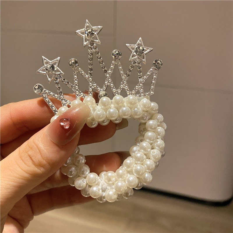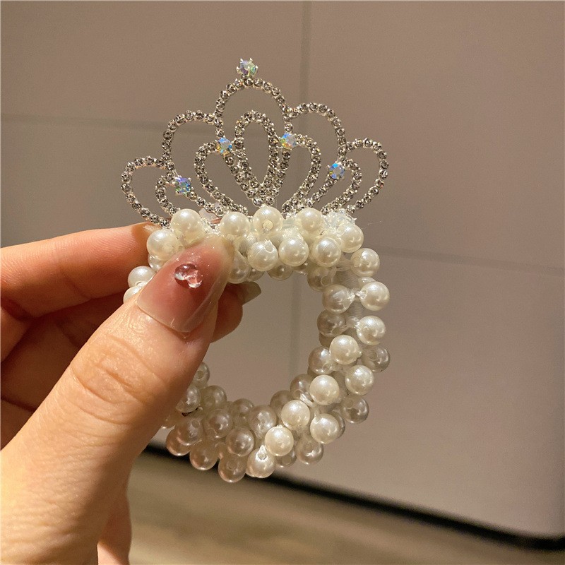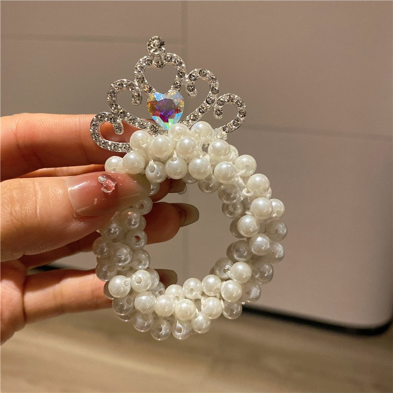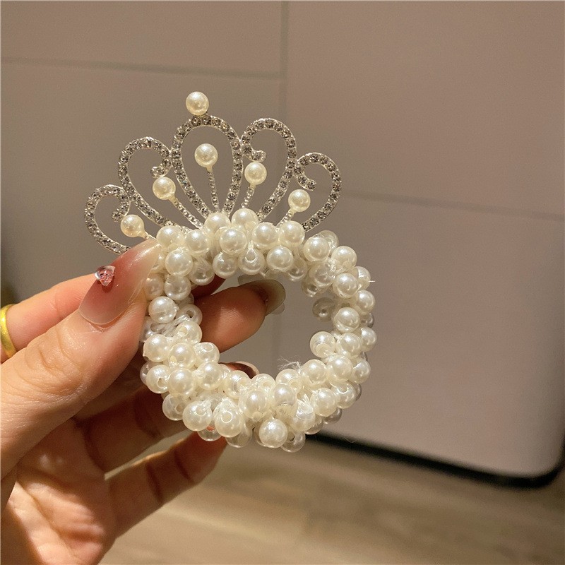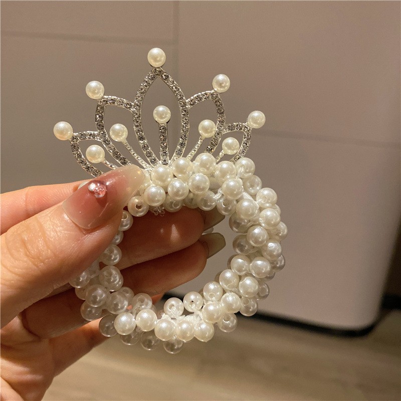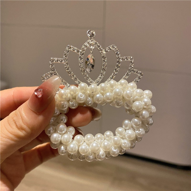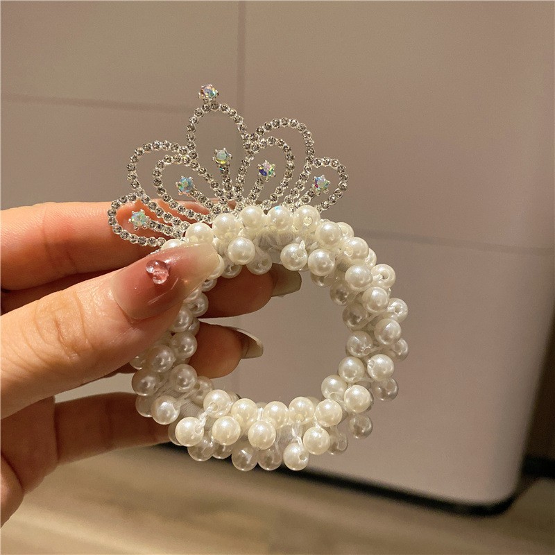 Internet celebridad niños princesa corona tocado perla bola cabeza pelo banda pelo cuerda niña pelo lazo goma banda tocado flor