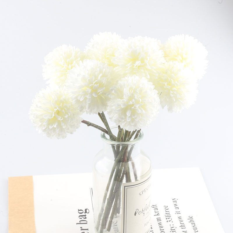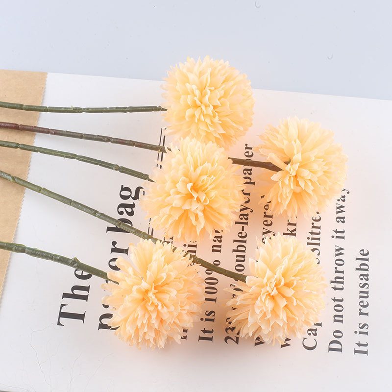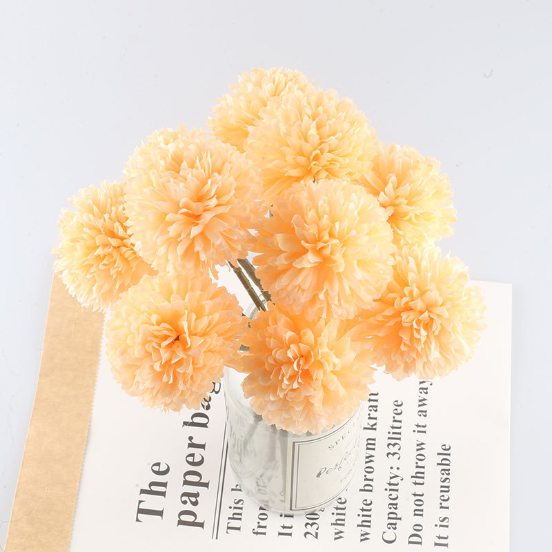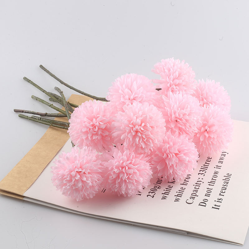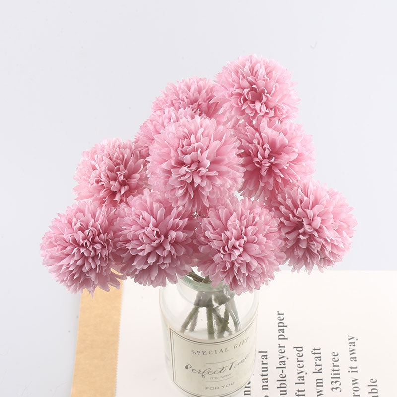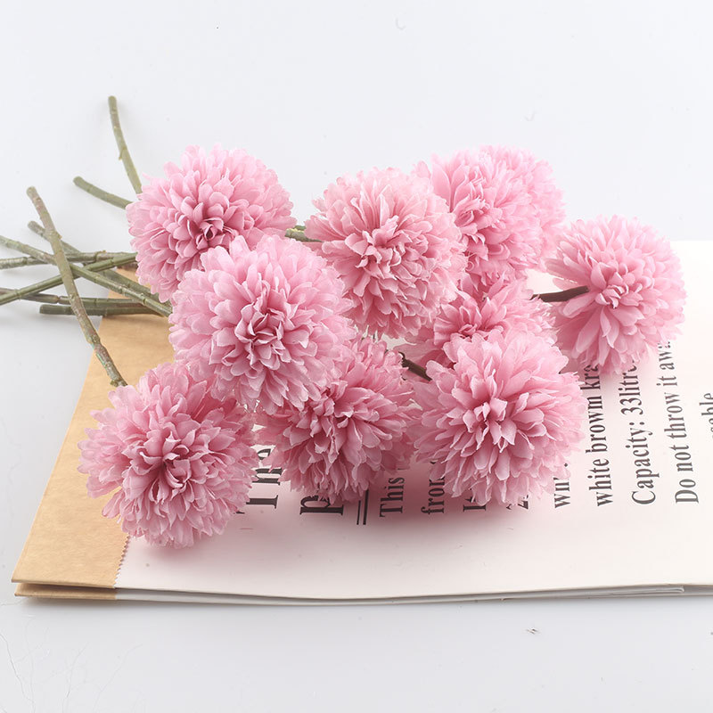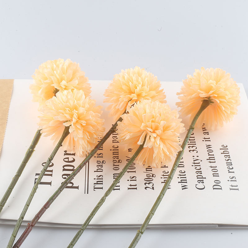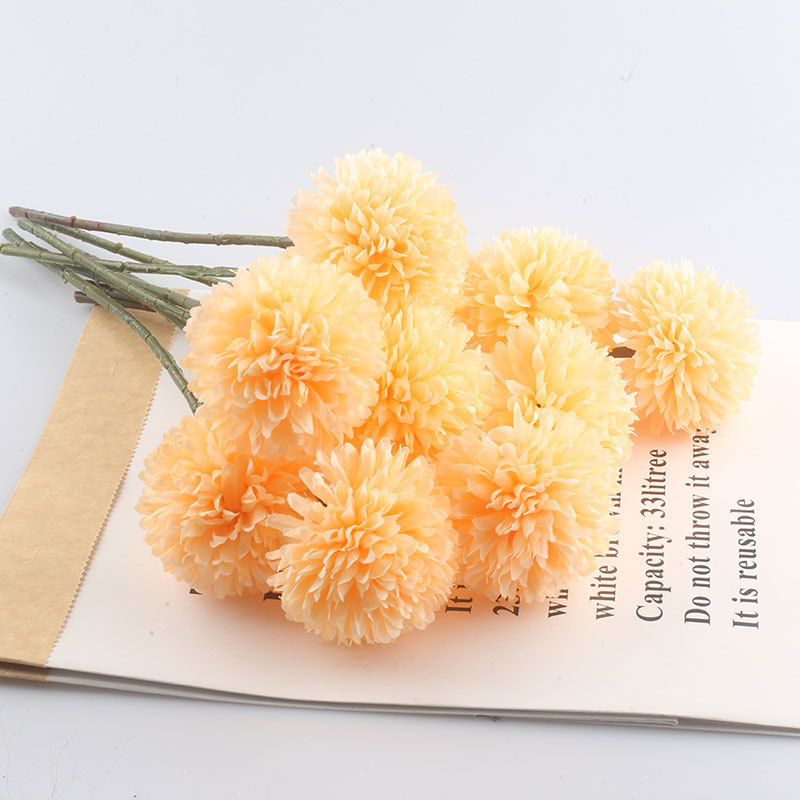 Simulación de flores artificiales planta ping pong crisantemo diente de león flor falsa decoración del hogar mil capas crisantemo boda bola crisantemo cabeza Decoración
