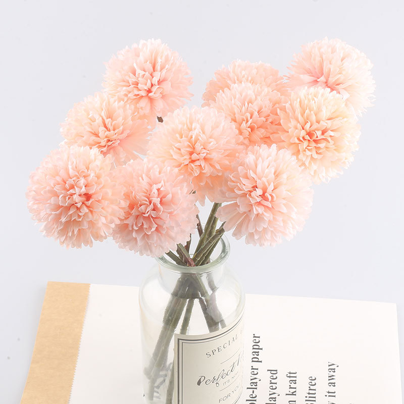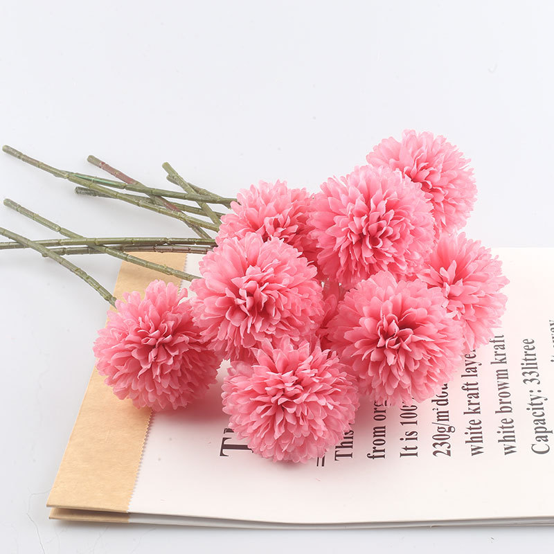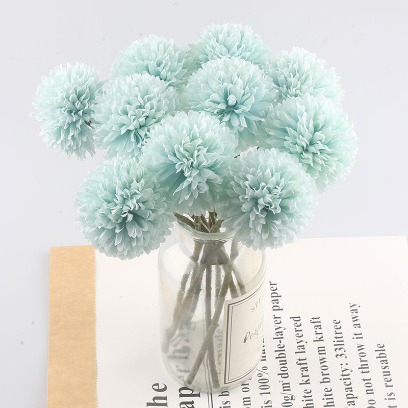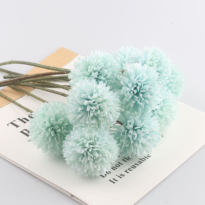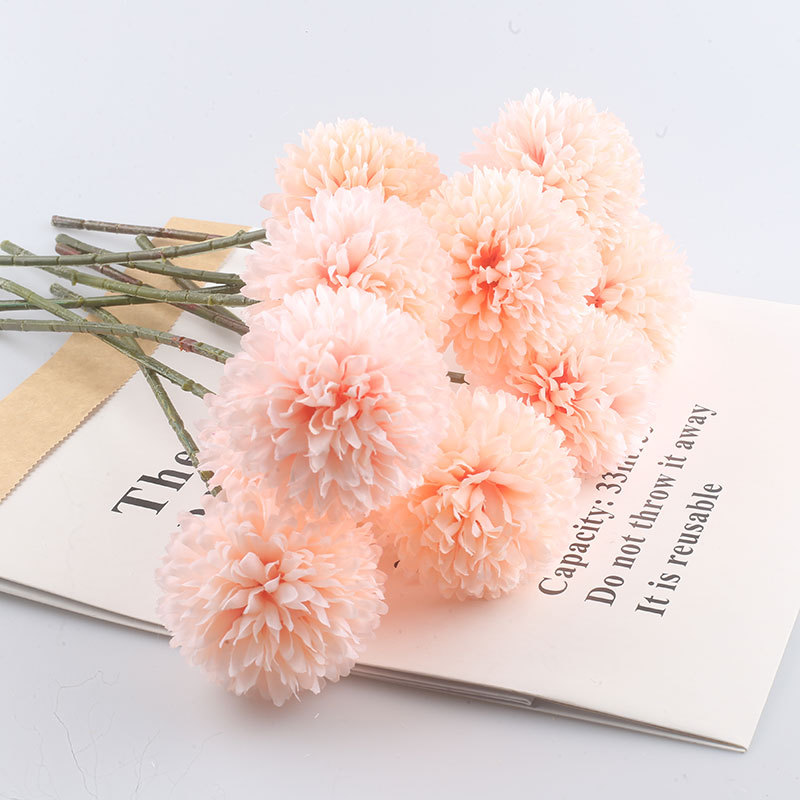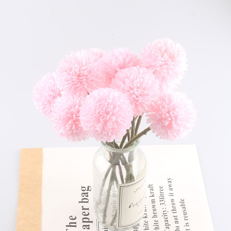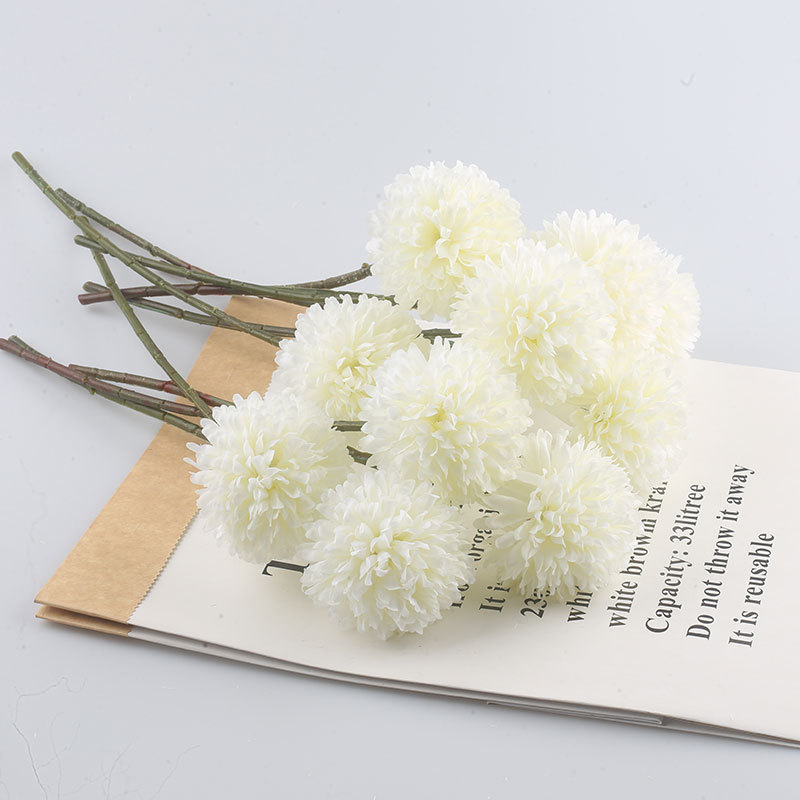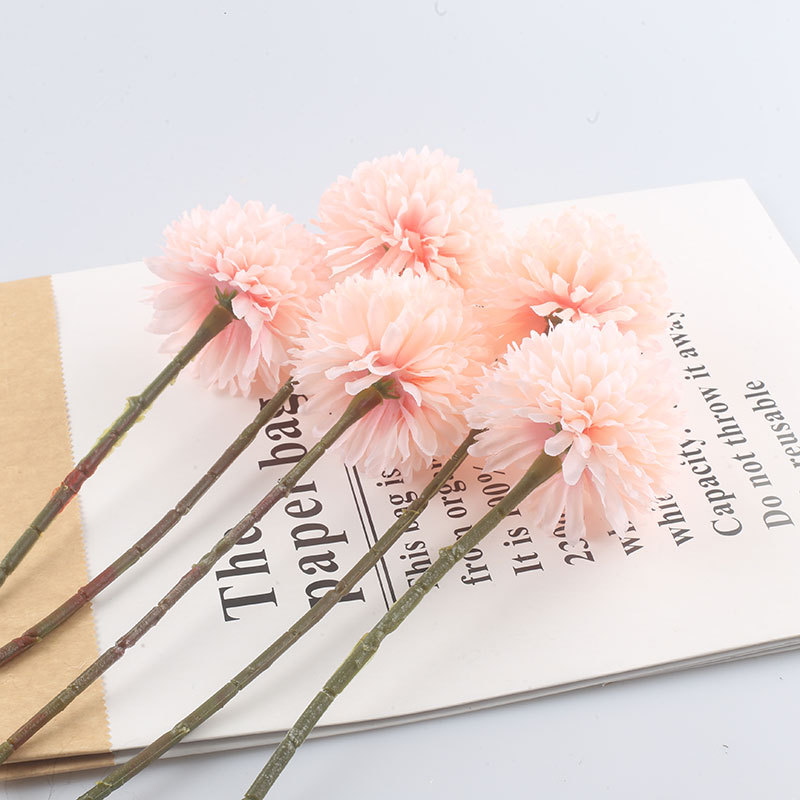 Simulación de flores artificiales planta ping pong crisantemo diente de león flor falsa decoración del hogar mil capas crisantemo boda bola crisantemo cabeza Decoración