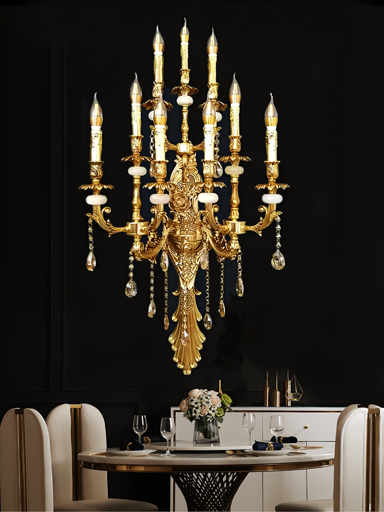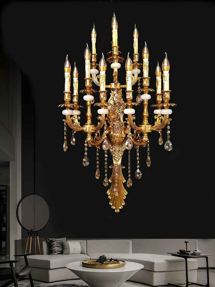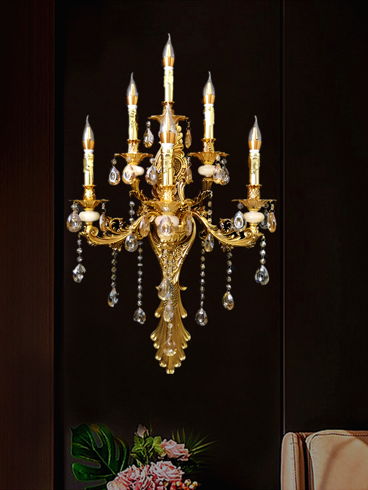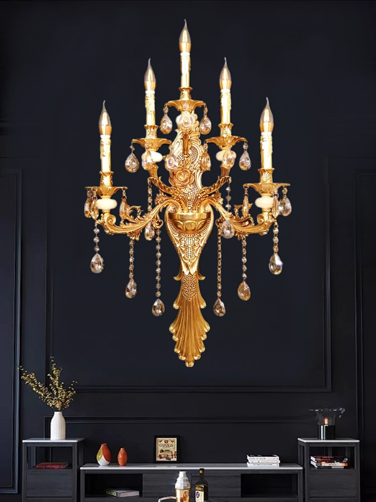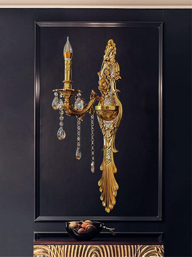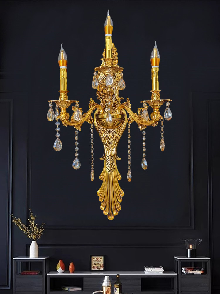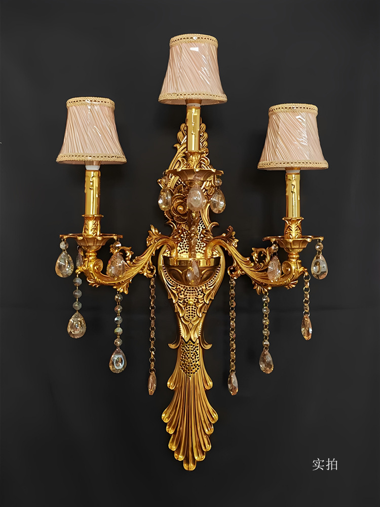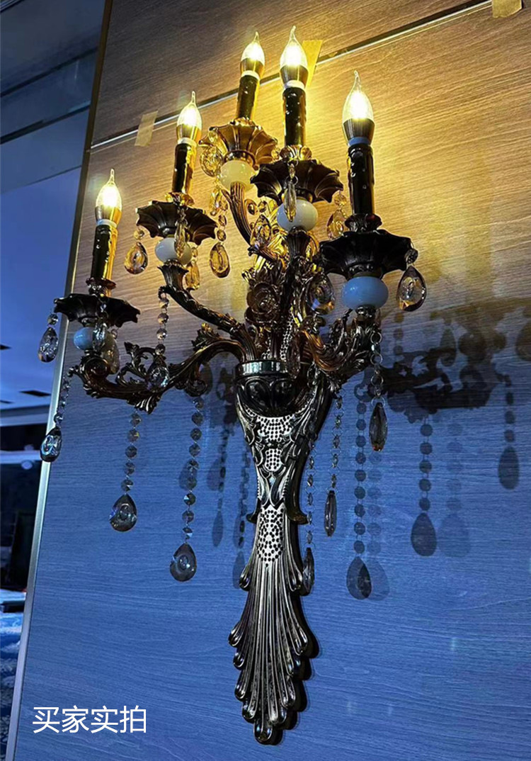 Gran lámpara de pared de cristal francés de lujo retro Villa sala de estar vestíbulo lámpara de pared del hotel lámpara de pared interior europea