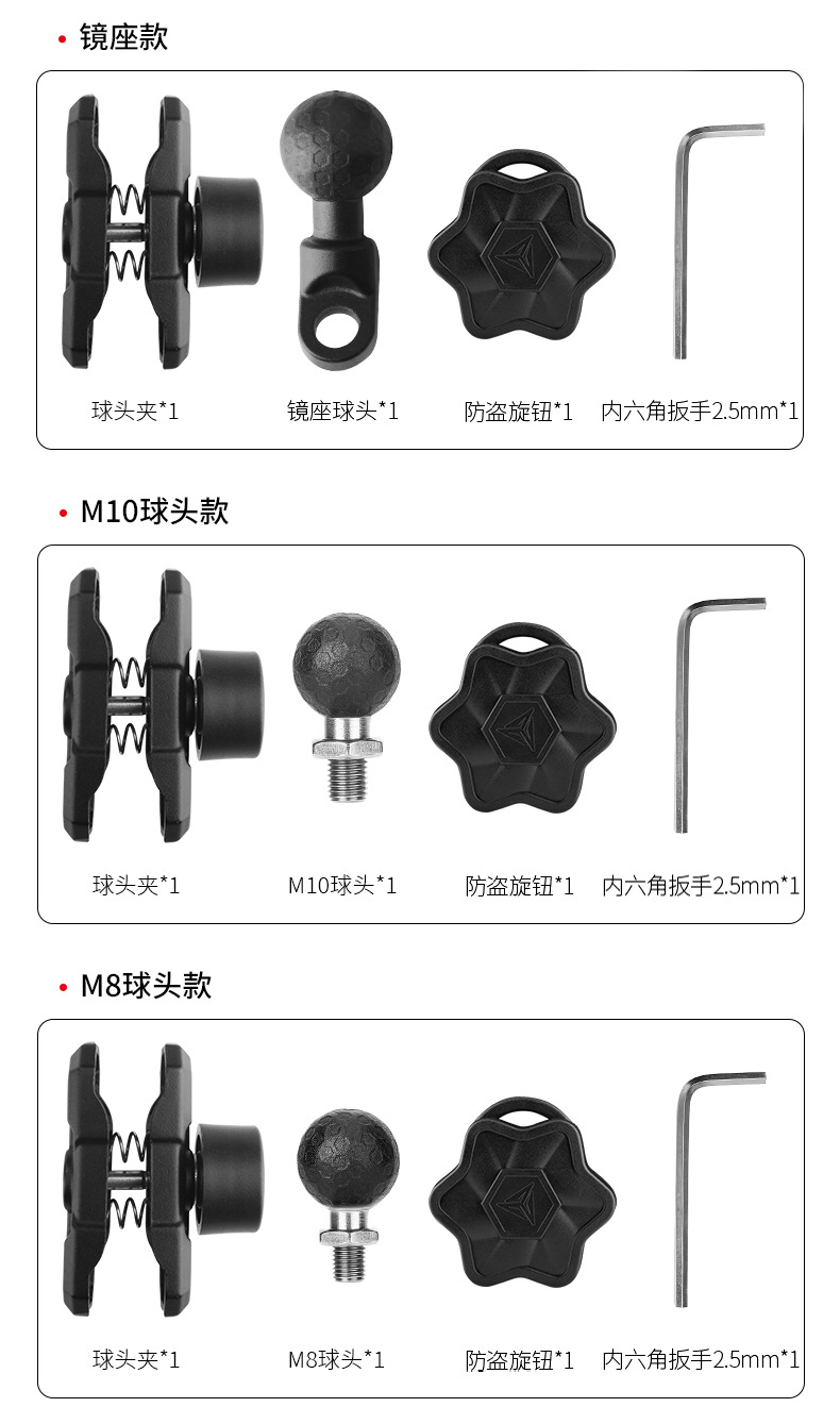 | Especificaciones | Modelo de manillar sin carga,Sin asiento de espejo recargable,Clip fuerte sin carga,Sin carga-modelo de cabeza de bola M8,Sin carga-modelo de cabeza de bola M10,Varilla de espejo sin carga,Carga inalámbrica Carga USB-Modelo de manillar,Carga inalámbrica soporte de espejo de carga USB,Carga inalámbrica Carga USB,Carga inalámbrica Carga USB-Cabeza de bola M8,Carga inalámbrica Carga USB-Cabeza de bola M10,Modelo de varilla de espejo de carga USB de carga inalámbrica,Parasol MDL4802-Negro,Sombrilla individual |
