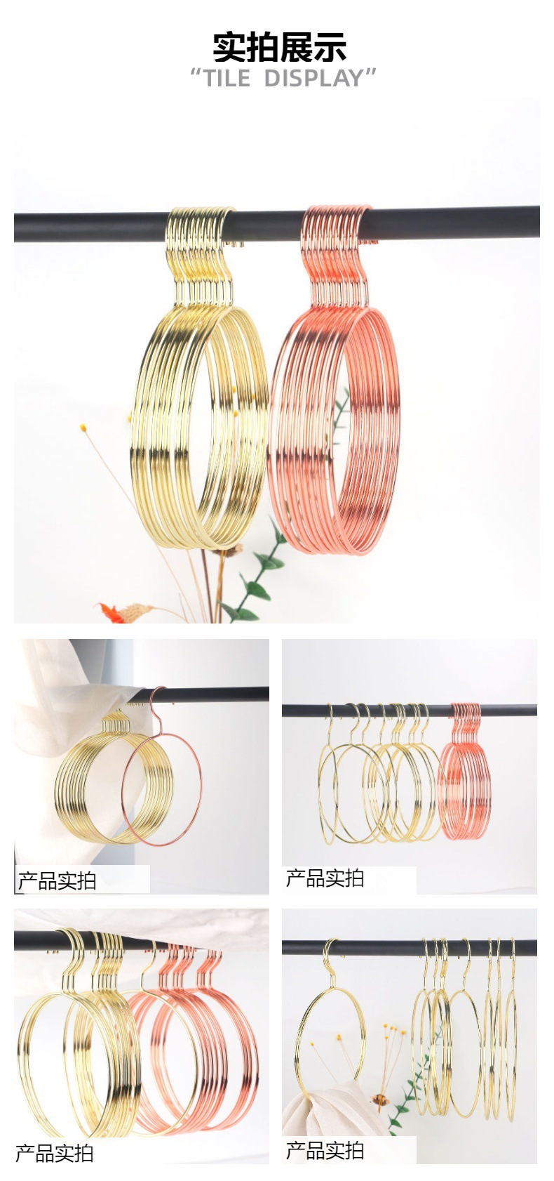Percha redonda nórdica de oro rosa metal hierro bufanda redonda percha de alambre de gran diámetro toalla percha