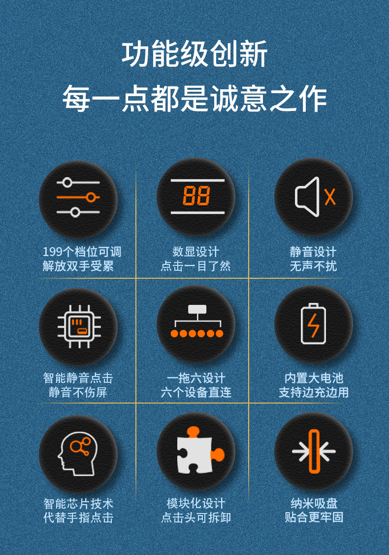 本店铺所有产品为工厂直销, 真正的源头厂家,公司研发团队实力强劲,所有产品均为原创,款式独特,致力于打造高质量的游戏辅 助神器-直播辅助/点击器【屏幕点击器】。 拥有多项结构外观专利