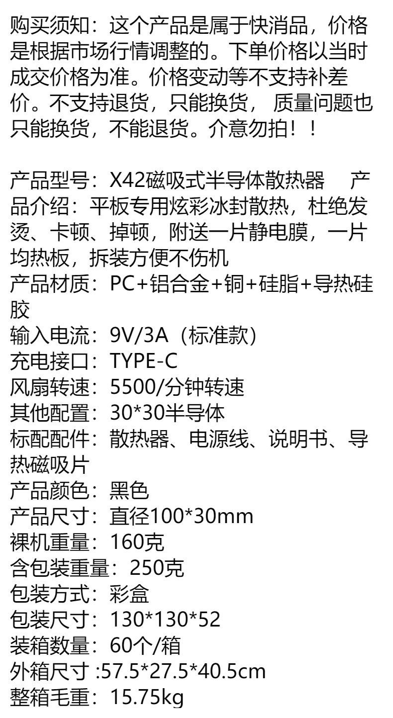 | Color del producto | Radiador plano X42-gris hierro,Radiador X42 + soporte plano,Sl06-flat radiador,Z27-flat bracket,Radiador de teléfono GT29-tablet [Frozen],Clip trasero de distribución [30W]-radiador plano |