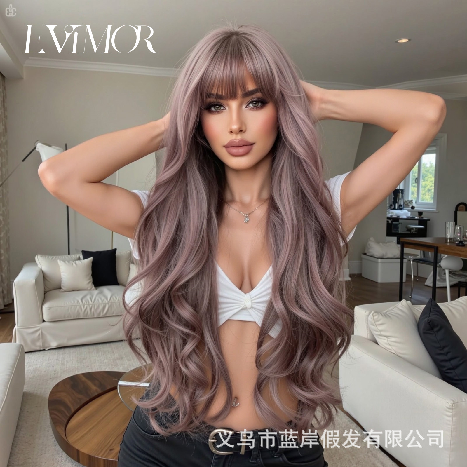 | peinado de peluca | Pelo largo y rizado con flequillo. |