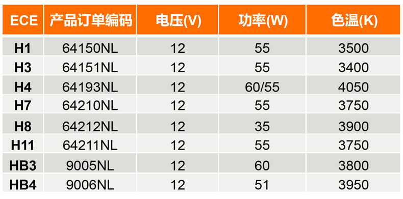 | Colores | H1 NL cuarta generación 150% de par fabricado en China,H3 NL cuarta generación 150% de par fabricado en China,H4 NL cuarta generación 150% equipo de producción alemana,H7 NL cuarta generación 150% equipo de producción alemana,H8 NL cuarta generación 20% equipo alemán,H11 NL cuarta generación 150% equipo de producción alemana,HB3/9005 NL cuatro generaciones 150% de pares fabricados en EE. UU.,HB4/9006 NL de cuarta generación 150% de par fabricado en EE. UU.,H3 NL cuarta generación 150% chino único,H1 NL cuarta generación 150% chino único |