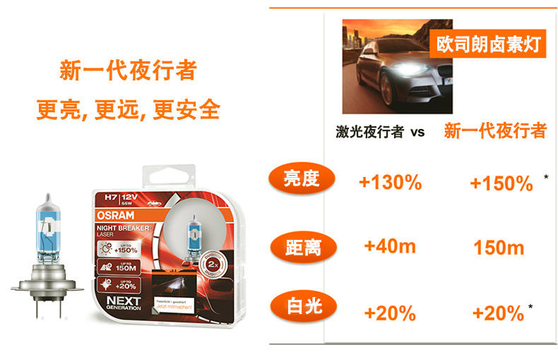 车友评价:欧司朗卤素灯中实用之选,黄白光兼顾穿透力和亮度,不改瓦数的前提下值的选择,直接替换原车灯即可,不影响车辆质保以及年检。请切合实际,总体反馈提升约20%-50%,请参见评价以及各汽车论坛的使用报告。本店承诺产品为欧司朗正品,不对效果做承诺,要求高的朋友可以考虑氙气灯LED之类】