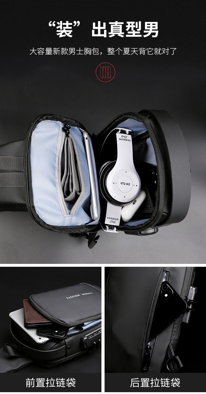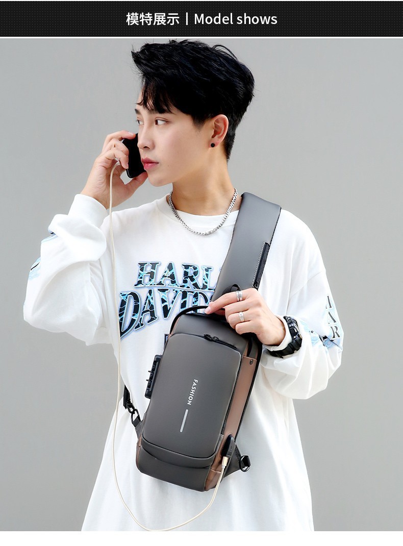 Bolso de motocicleta con carga USB para hombre, bolsa de pecho Trendyy con contraseña para ciclismo, bolso de hombro para hombre, riñonera deportiva, bolso cruzado