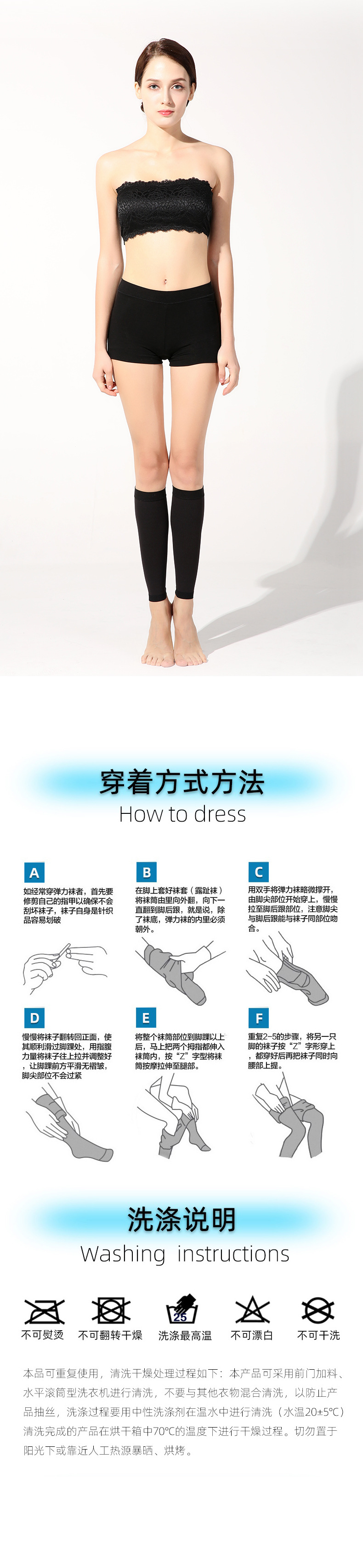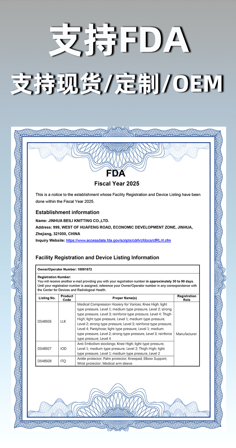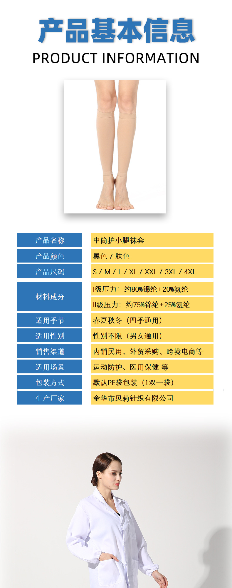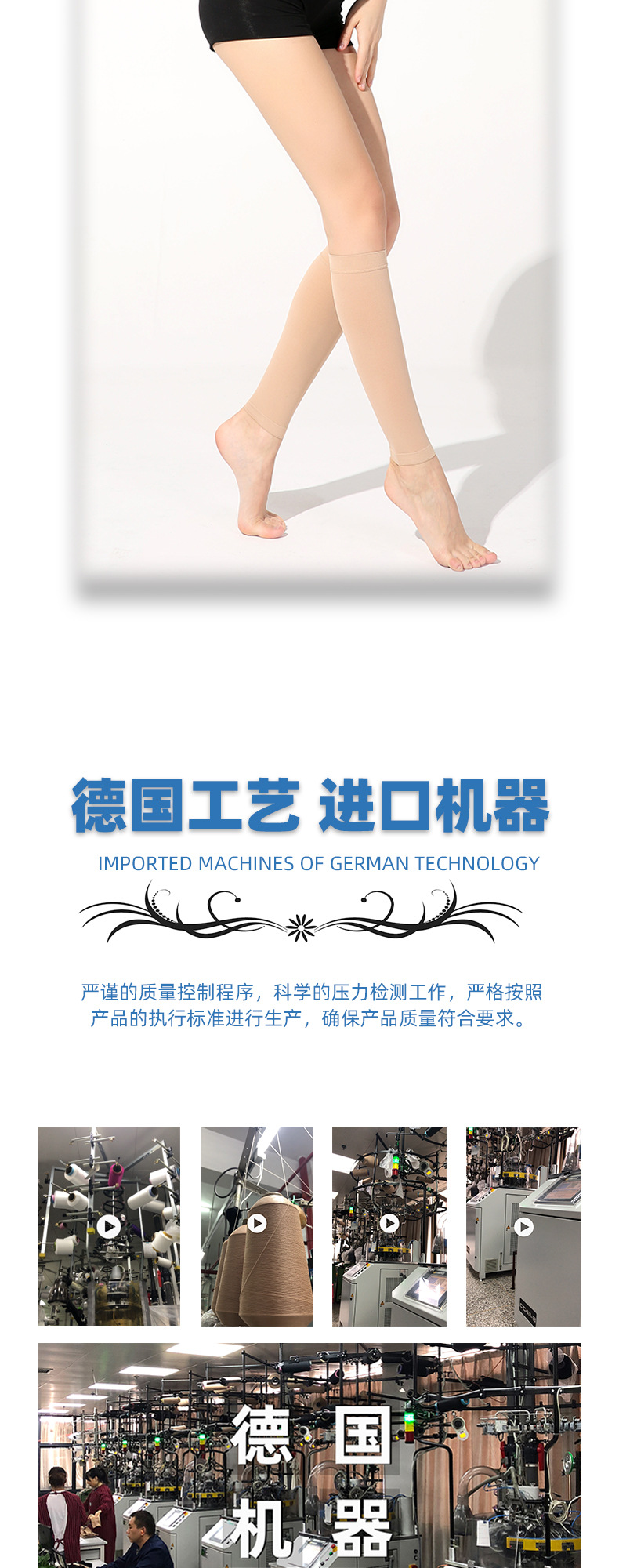 关于产品特点:本产品为进口压力袜机器织造,出产率低,成本高,原料贵。成品弹力好,回弹性佳,压力感明显,材质耐穿,非普通的棉压力袜可比,请采购商知悉。