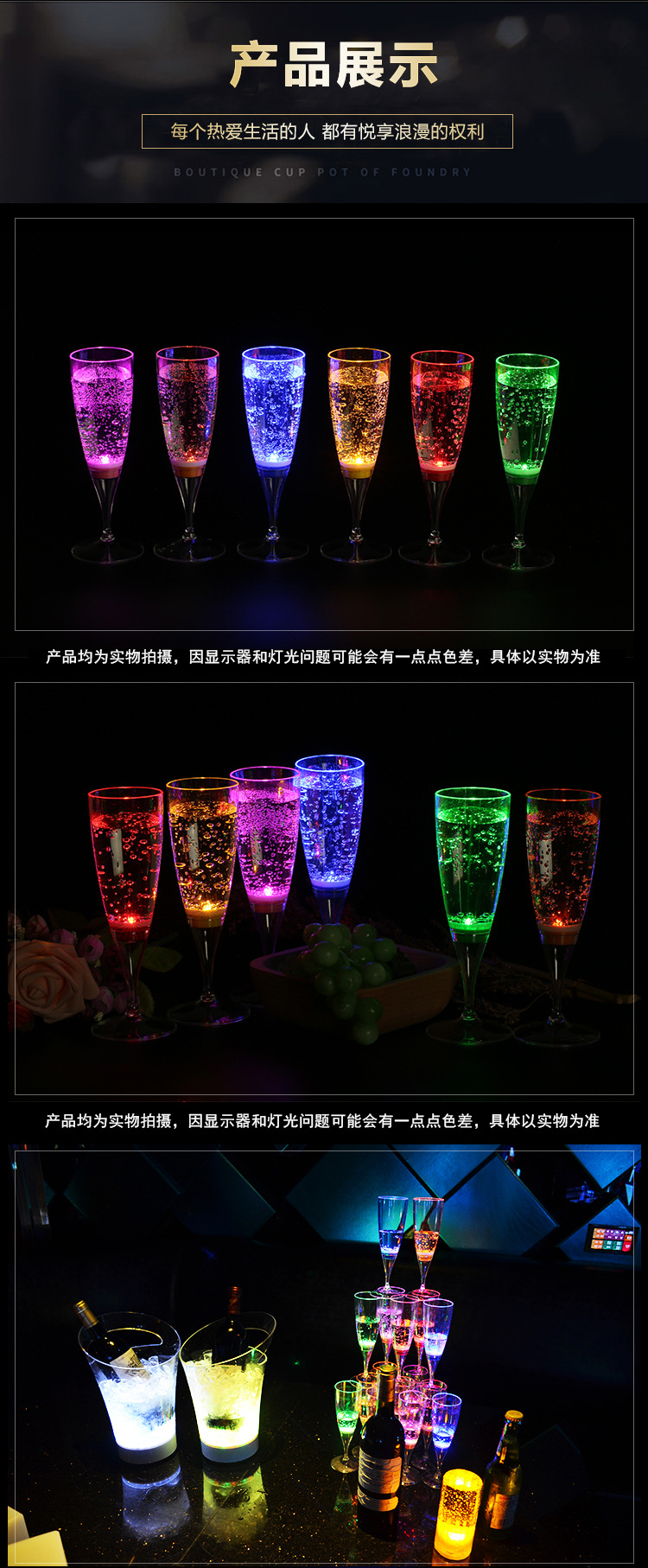 | Colores | Copa de champán luminosa (6 unidades/juego, batería no reemplazable),Copa de champán luminosa (6 unidades/juego),Taza de whisky luminosa (6 unidades/juego),Copa de cóctel luminosa (6 unidades/juego) |