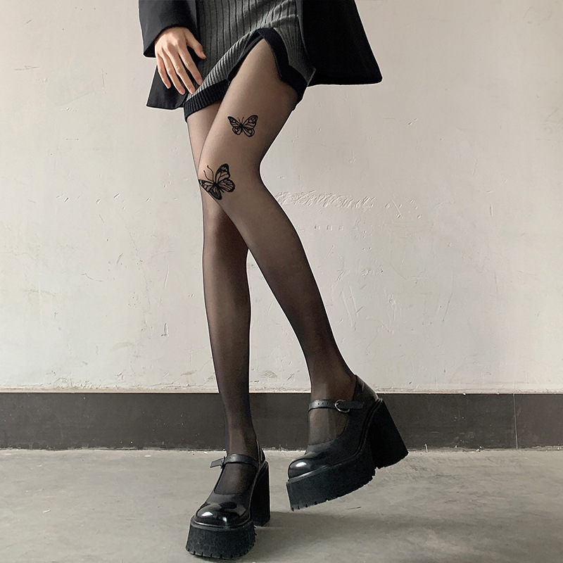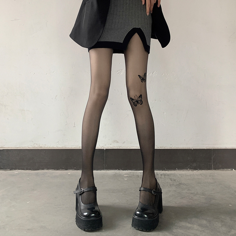 Medias negras mujeres sexy primavera y otoño fino estilo mariposa letras estampadas ins marea azul mariposa red neta calcetines blancos
