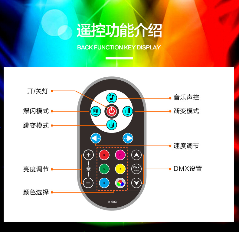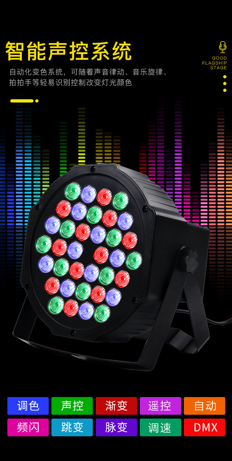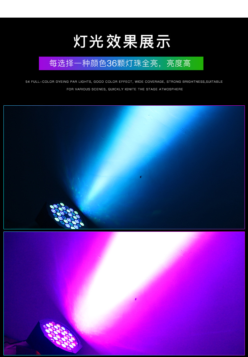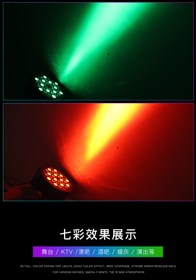 效果:内置7彩渐变、7彩脉变、7彩跳变效果程序,可适应不同场合;