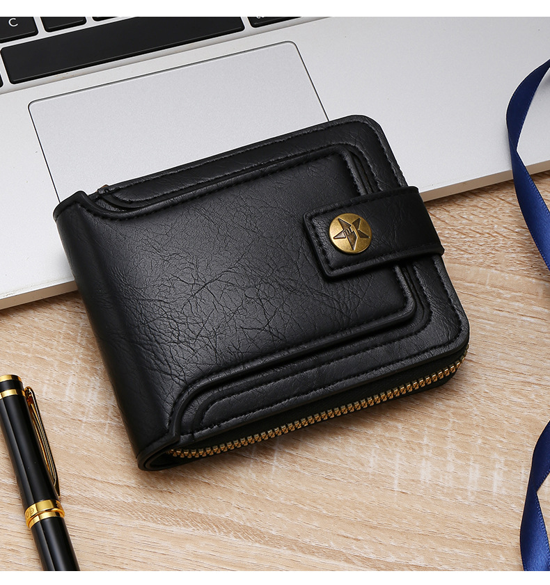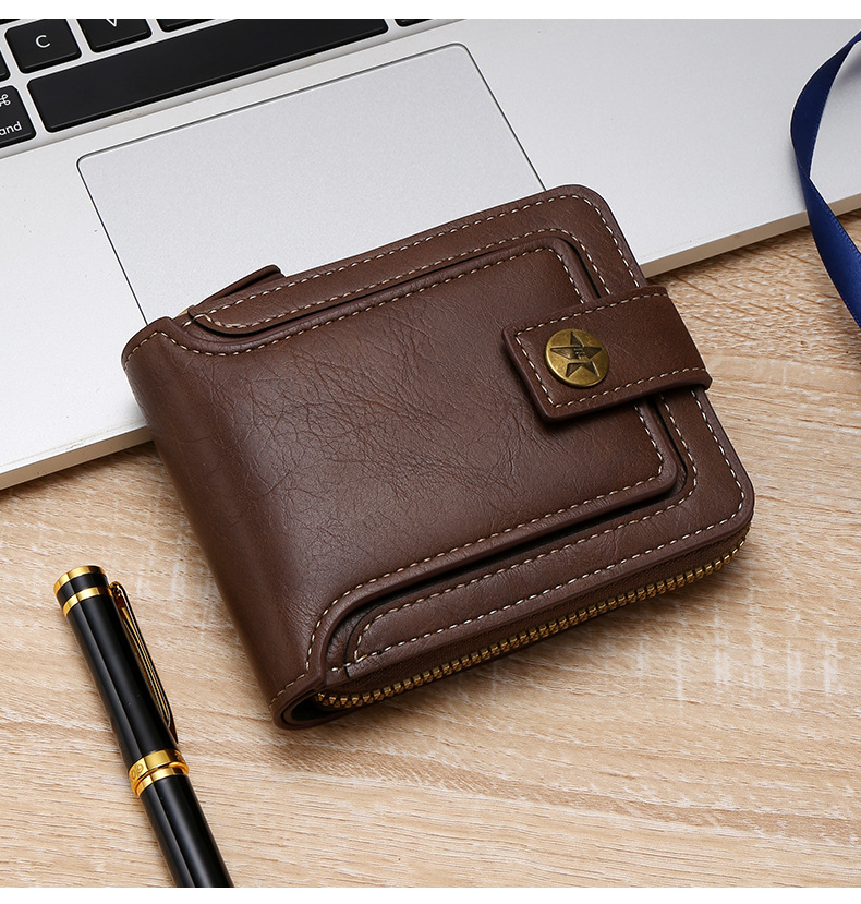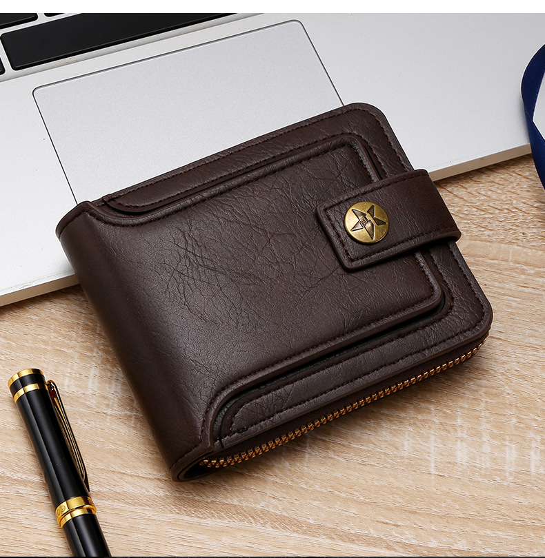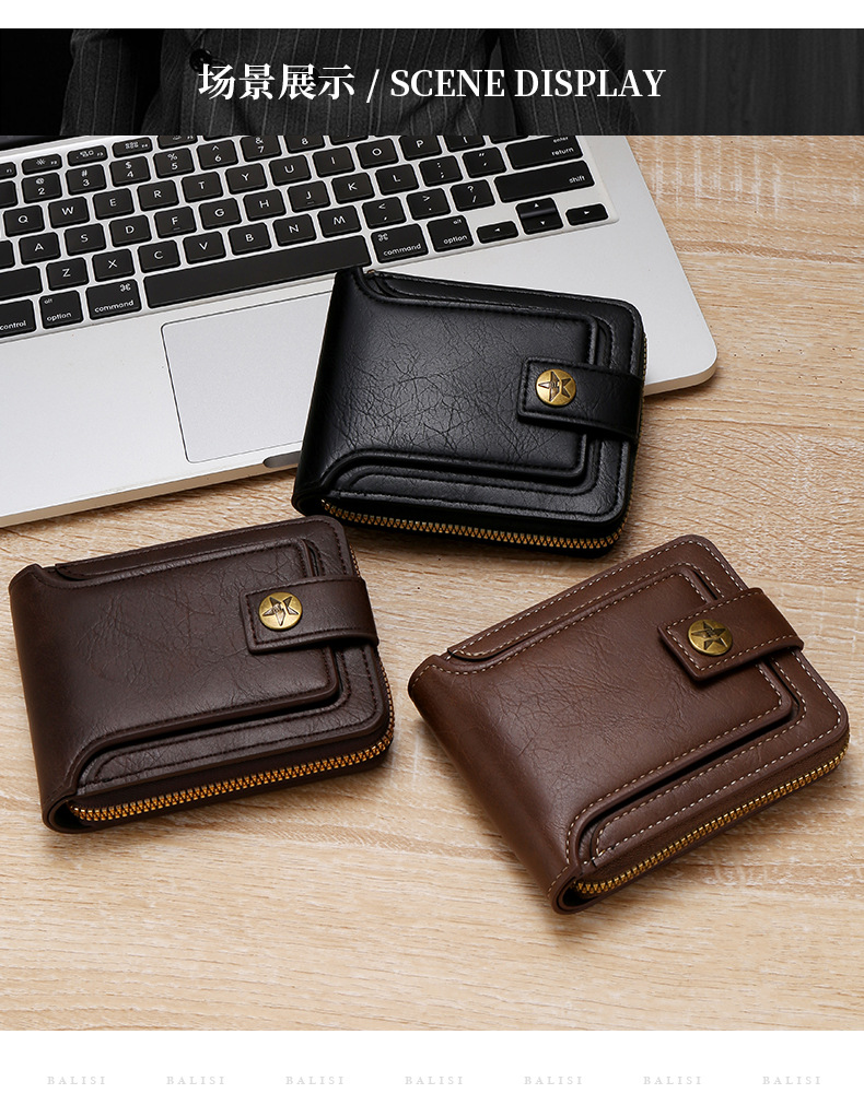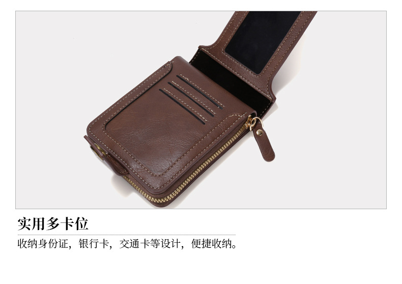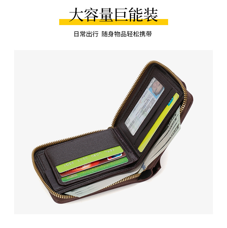 Transfronterizo popular nuevos hombres billetera corta de gran capacidad titular de la tarjeta de licencia de conducir juvenil Cartera horizontal integrada al por mayor
