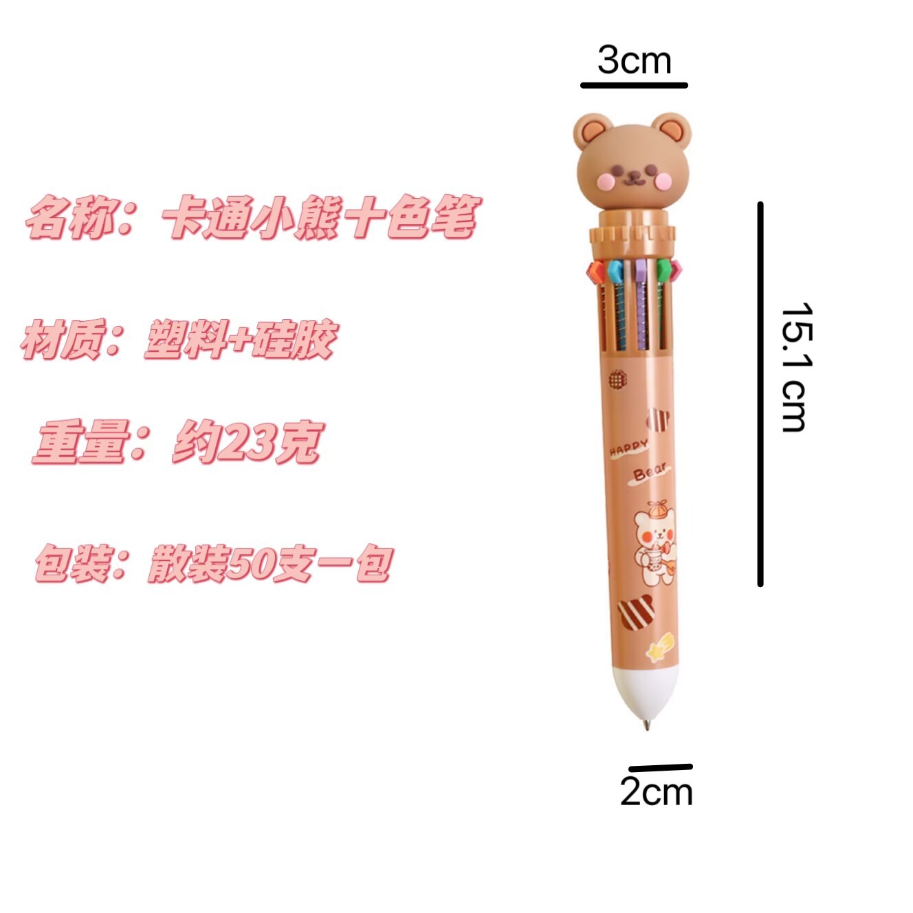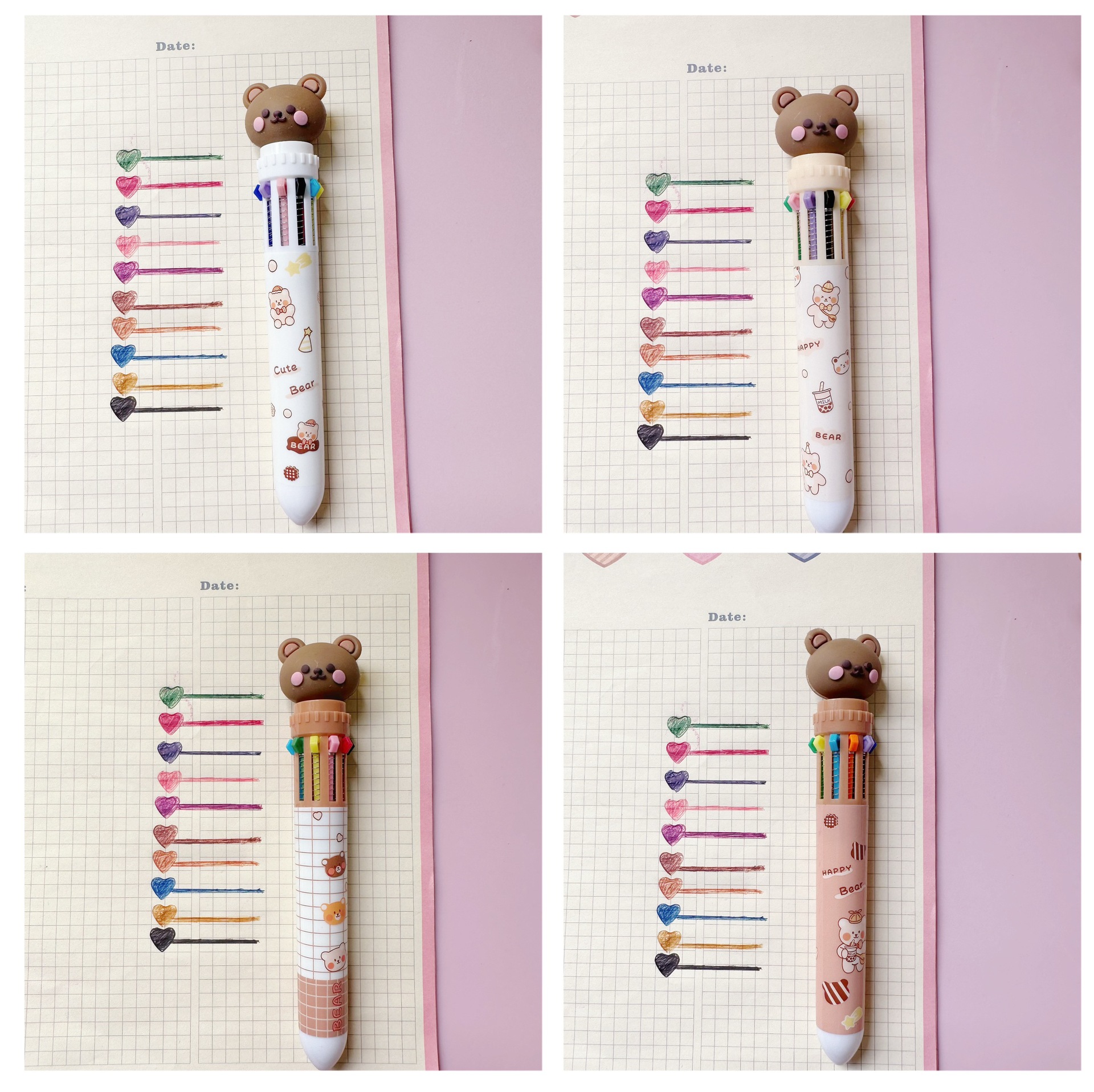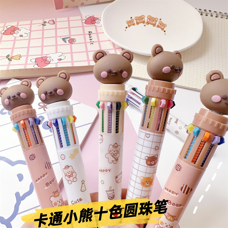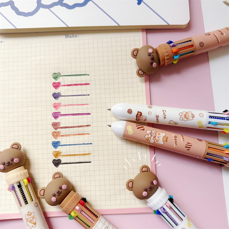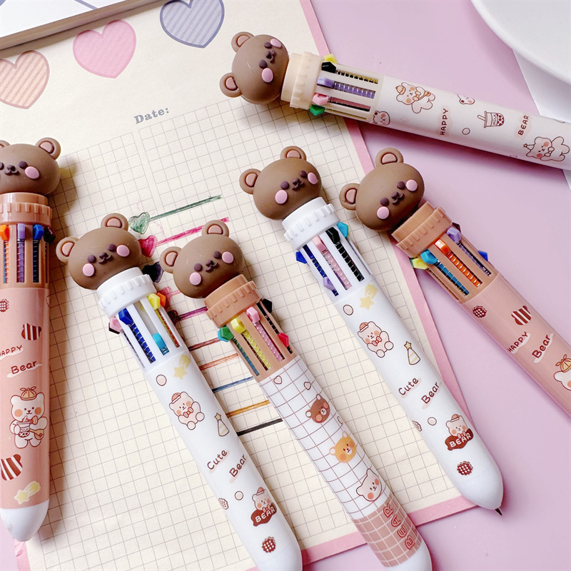 Dibujos animados lindo oso multicolor pluma diez en uno prensa multicolor bolígrafo estudiante diario pluma de gel