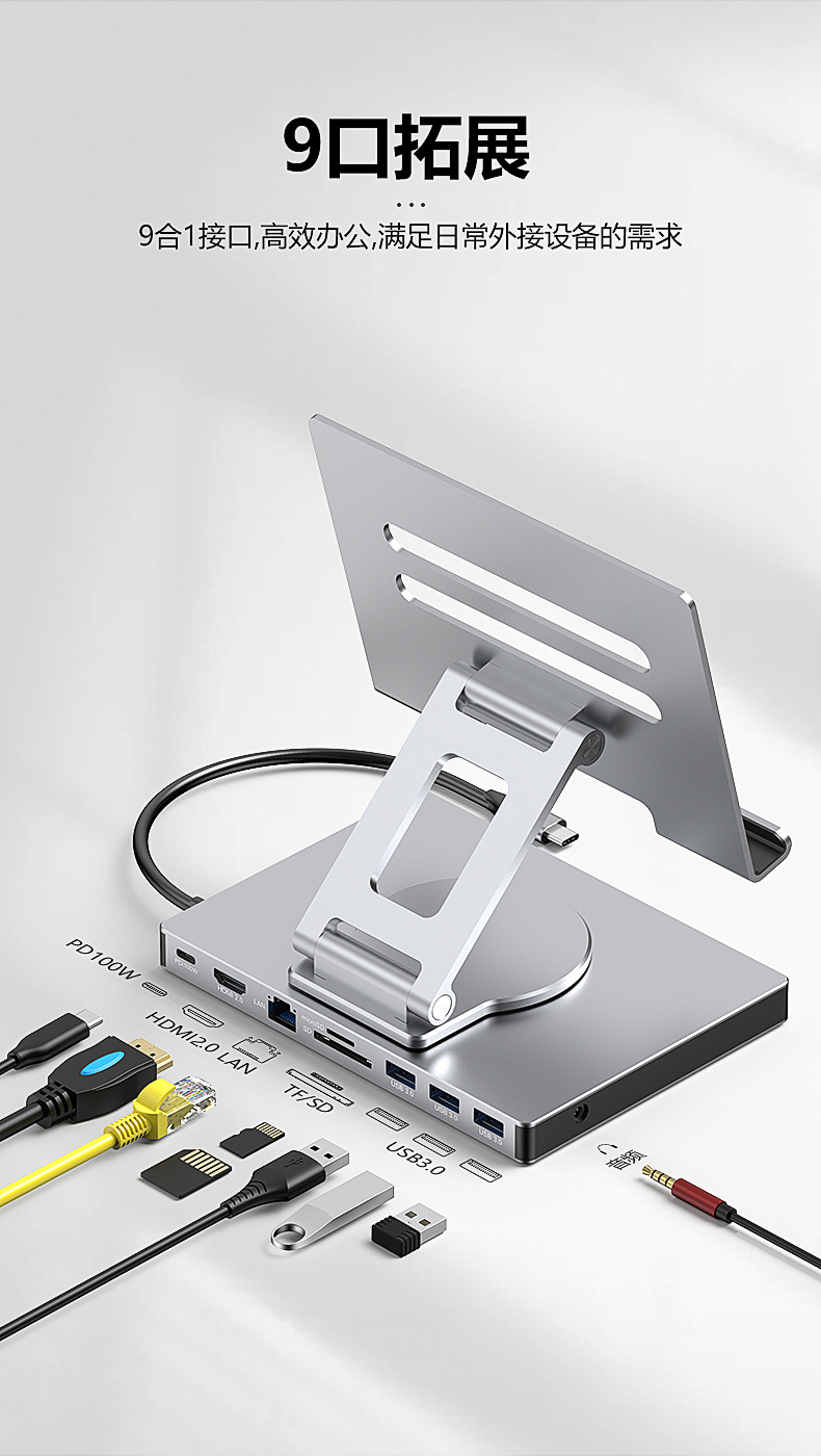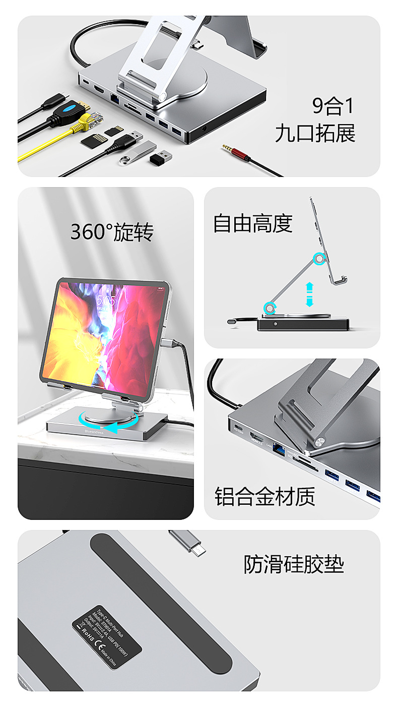 | Número de interfaces | Soporte plano [giratorio] 9 en 1,Soporte para tableta 9 en 1,Soporte plano [giratorio] 8 en 1,Soporte para tableta 8 en 1,Soporte plano [giratorio] 7 en 1,Soporte plano 7 en 1,Soporte para portátil 10 en 1,Soporte para portátil versión de puerto de red 10 en 1,Portátil [Rotación] Soporte 10 en 1,Portátil [giratorio] soporte 10 en 1 versión de puerto de red |