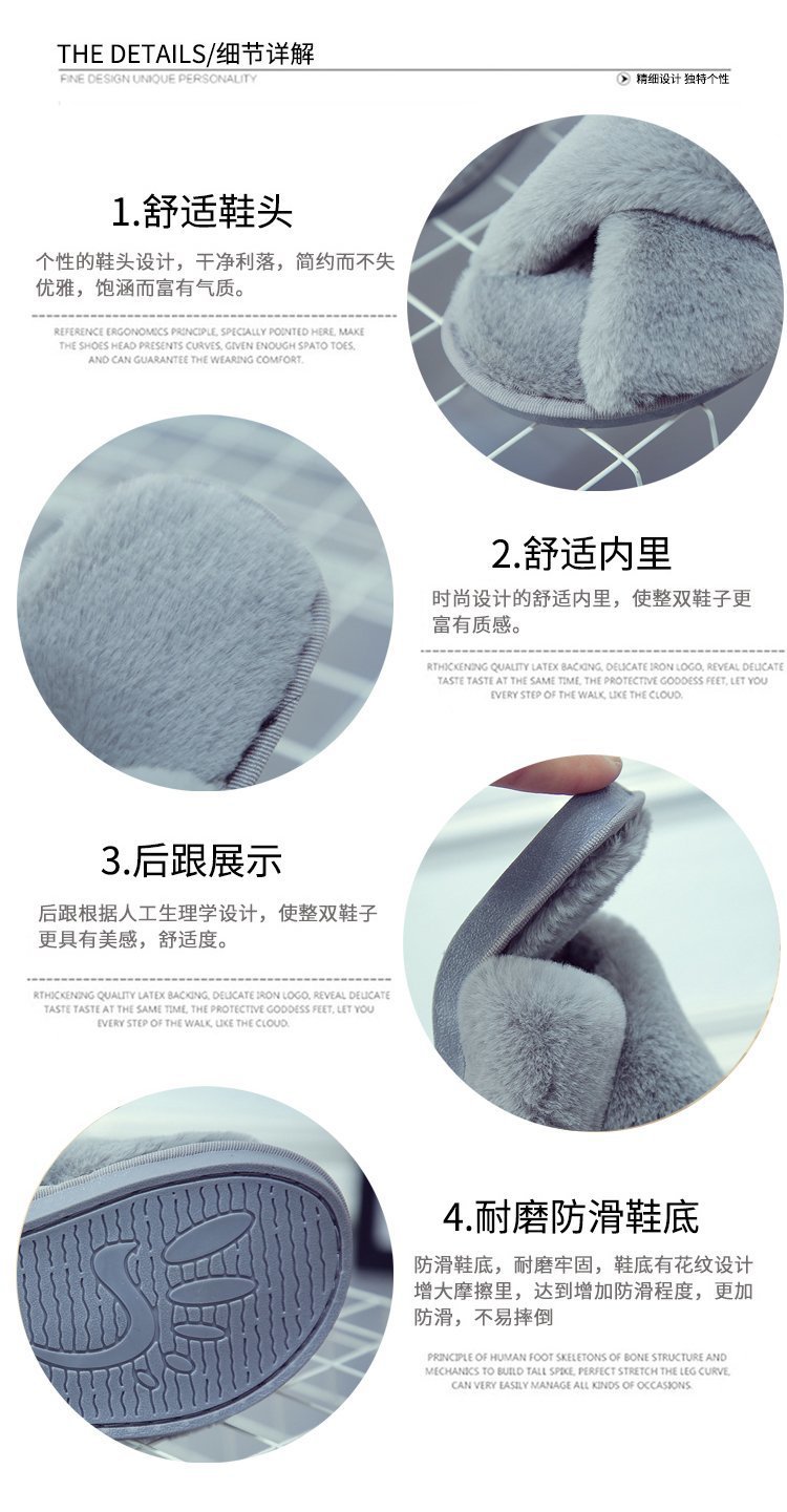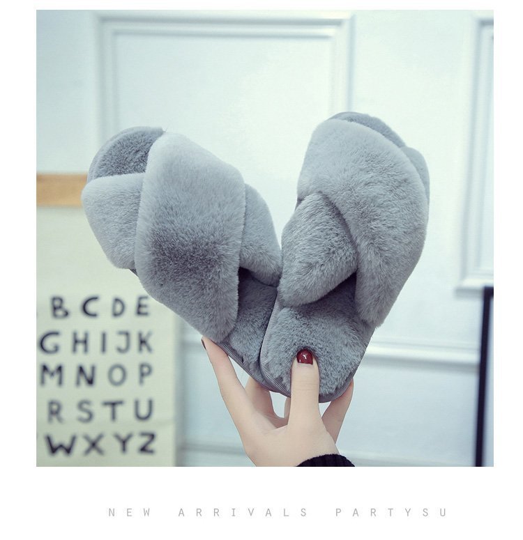 Zapatillas de felpa de invierno de las mujeres casa interior felpa piso plano zapatillas punta abierta Cruz flip flops Zapatillas de algodón caliente