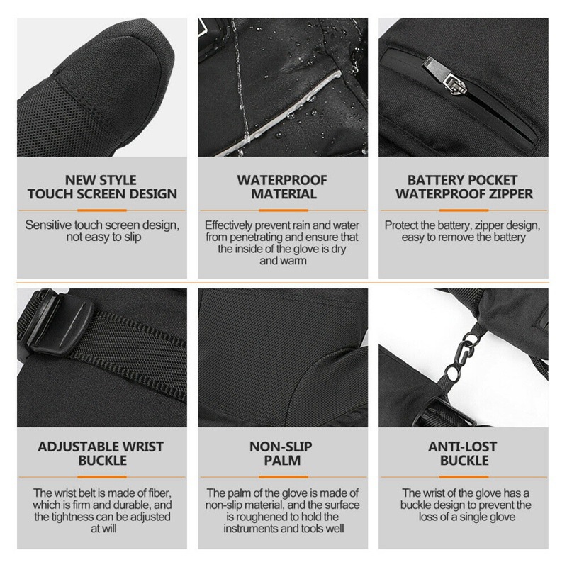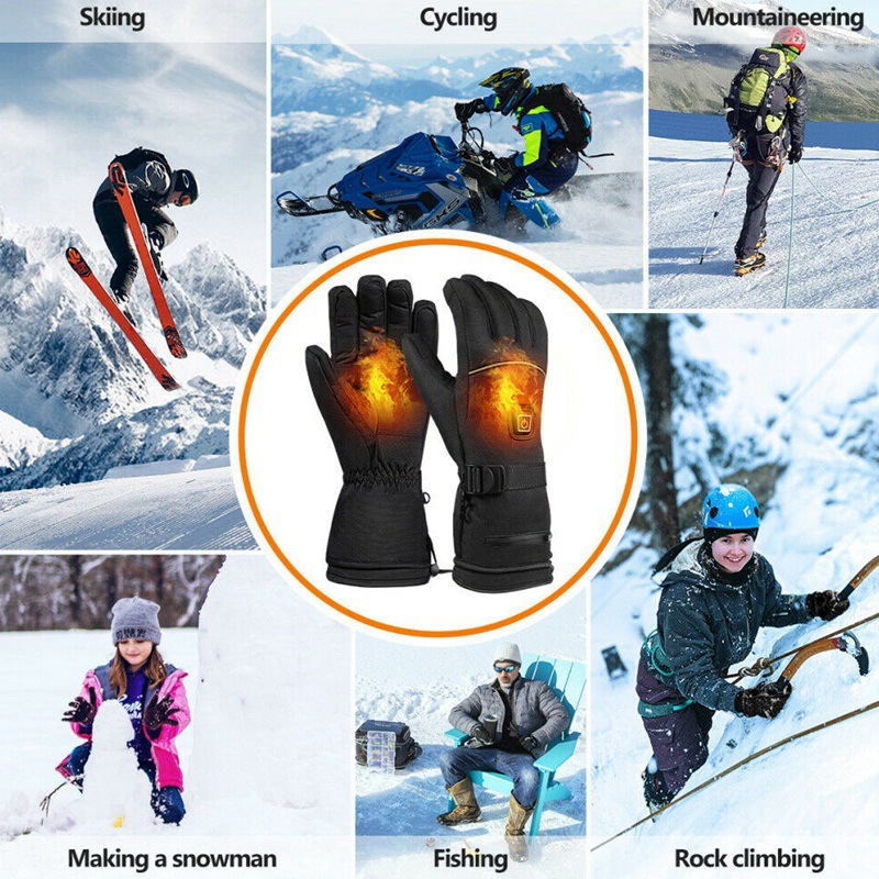 Guantes de calefacción, protección contra el frío de invierno, pantalla táctil, a prueba de viento, impermeable, cálidos, guantes de ciclismo en motocicleta, guantes de esquí, calefacción