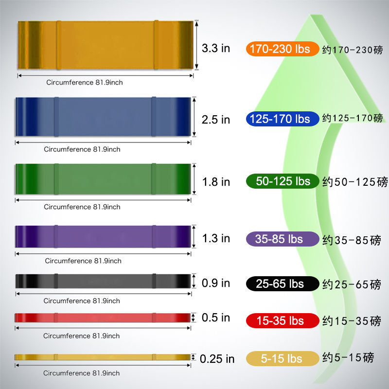 | Colores | Amarillo [5-15 libras] adecuado para calentar,Rojo [15-35 lbs] Modelo de entrada para mujer,Negro [25-65 lbs] estilo de entrada para hombre,Purple [35-85 lbs] Actualización para hombres,Verde [50-125 lbs] Modelo profesional,Azul [125-170 lbs] Modelo profesional,Naranja [170-230 lbs] Se puede introducir el modelo maestro,Gris [230-280 lbs] El modelo maestro se puede introducir,Hebilla de la puerta del mango [sin correa de tracción],[Embalaje exquisito independiente, debe comprarse por separado],Bolsillos con cordón de tela Oxford,Instrucciones |