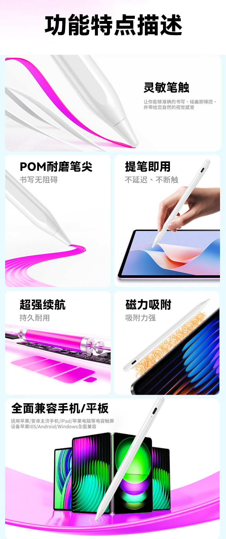 | Objetos aplicables | Teléfonos móviles, tabletas, portátiles con pantalla táctil, lectores de puntos y otros dispositivos de pantalla capacitiva |