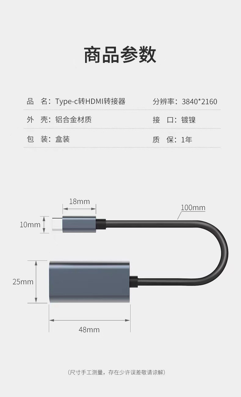 | Artículo No. | Tipo-c a HDMI Cable de conversión de aleación de aluminio 4K |