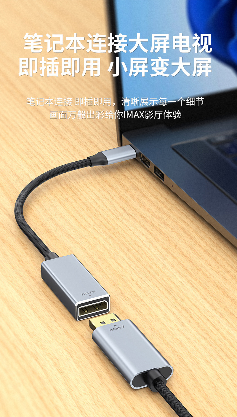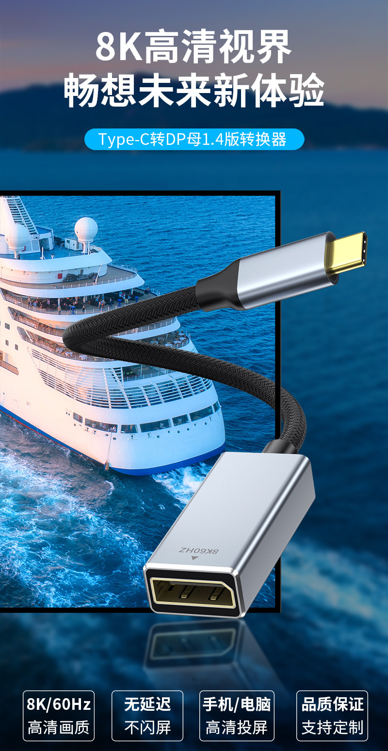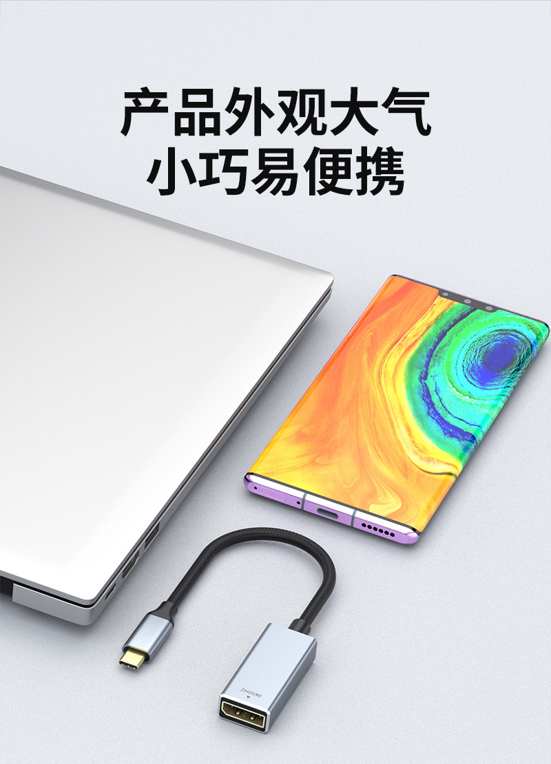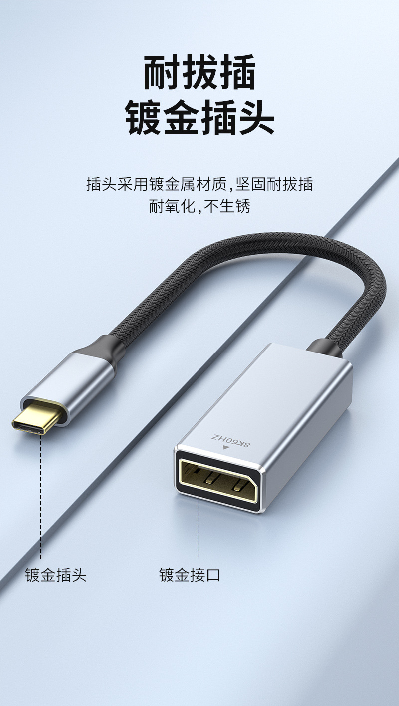type-c转dp母转换线1.4版8K60HZ手机投屏线电脑显示器同接typec转dp