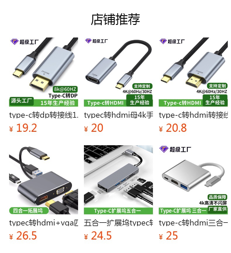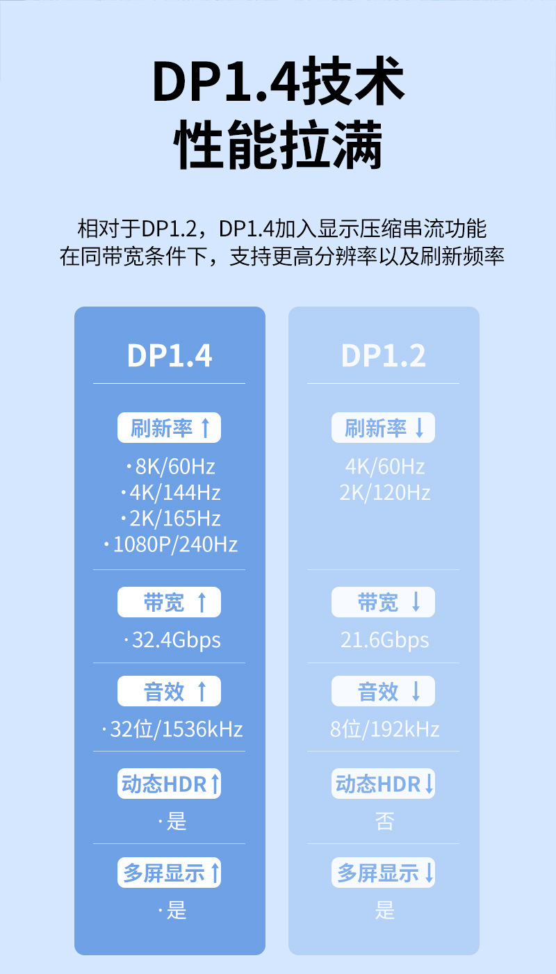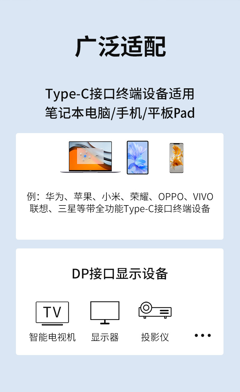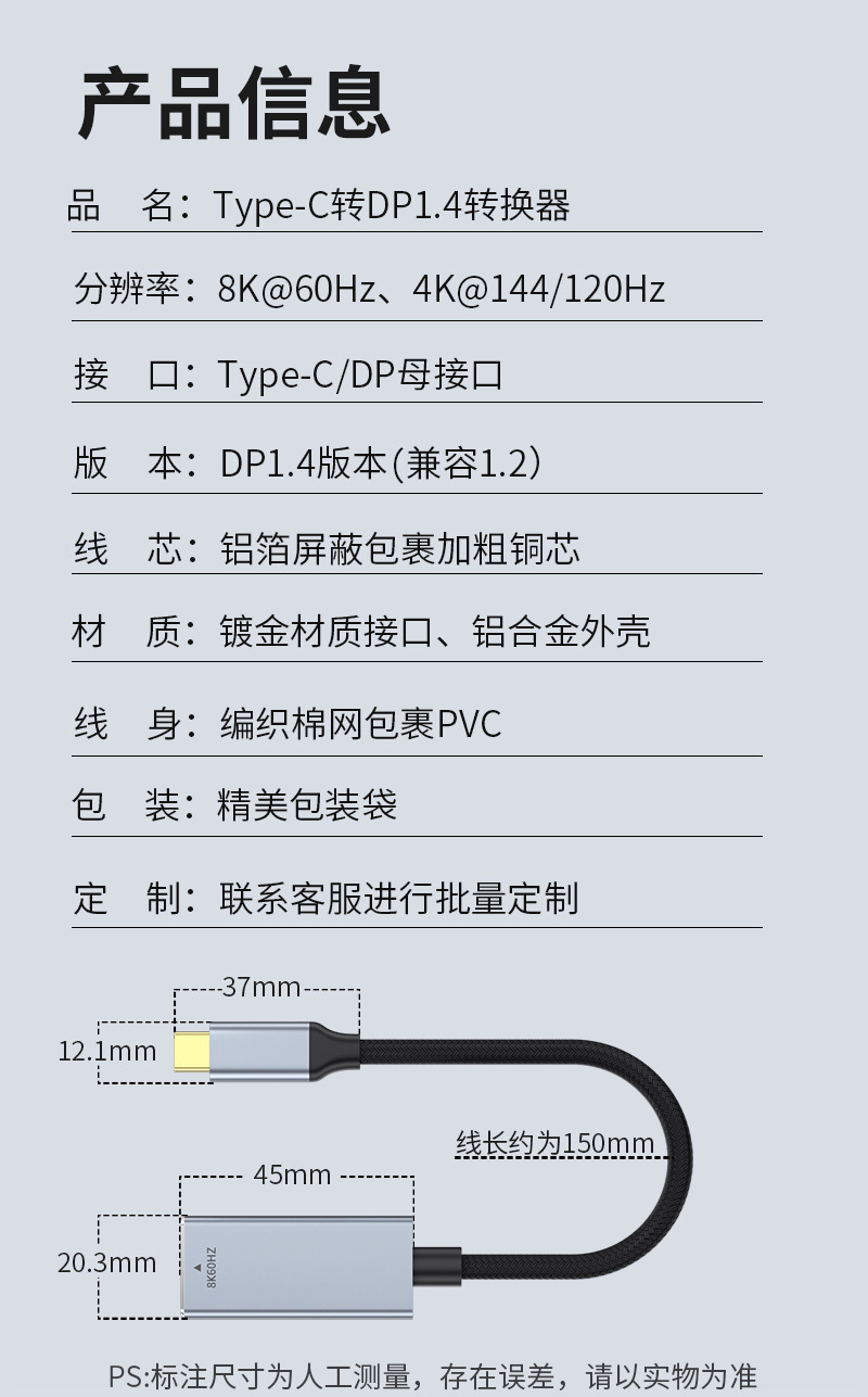 type-c转dp母转换线1.4版8K60HZ手机投屏线电脑显示器同接typec转dp