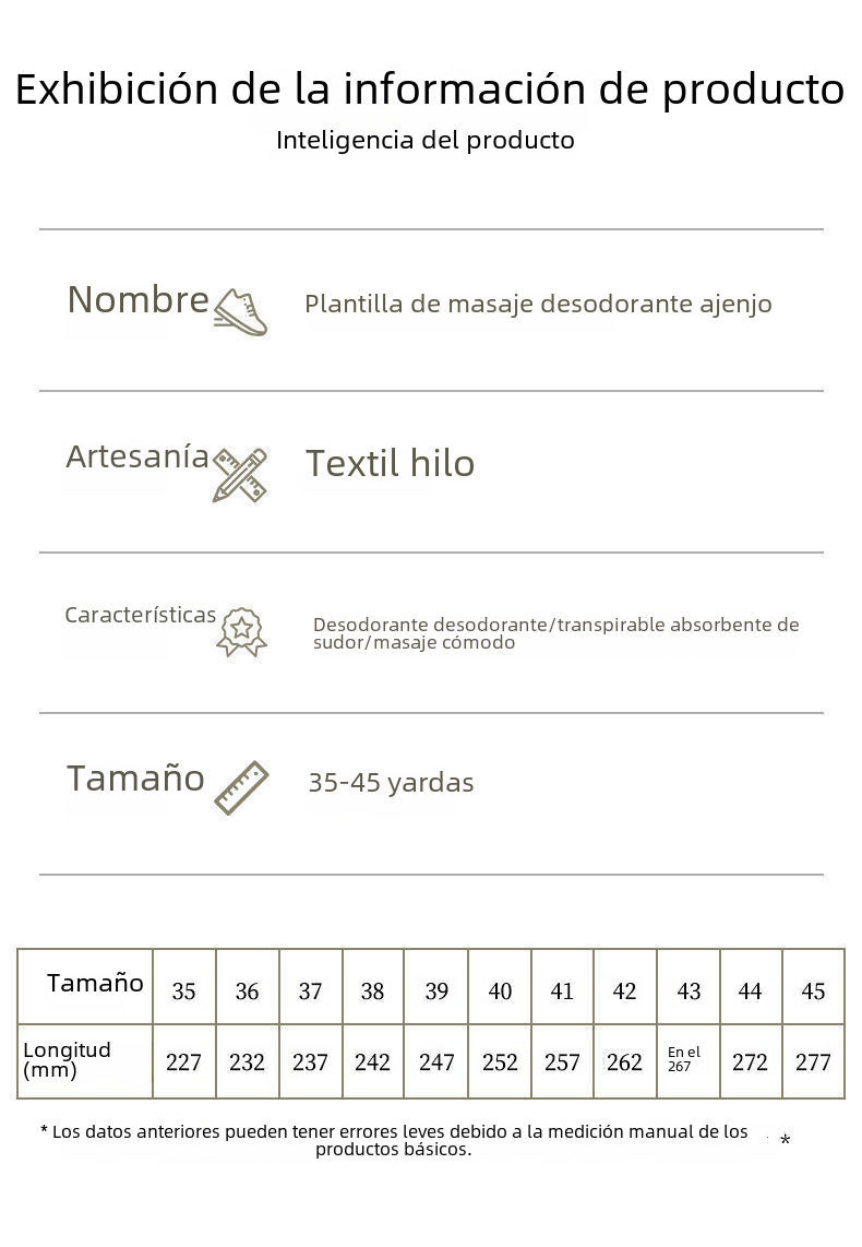 | Tamaño de la plantilla | 35,36,39,38,40,41,42,43,44,45,46,37 |