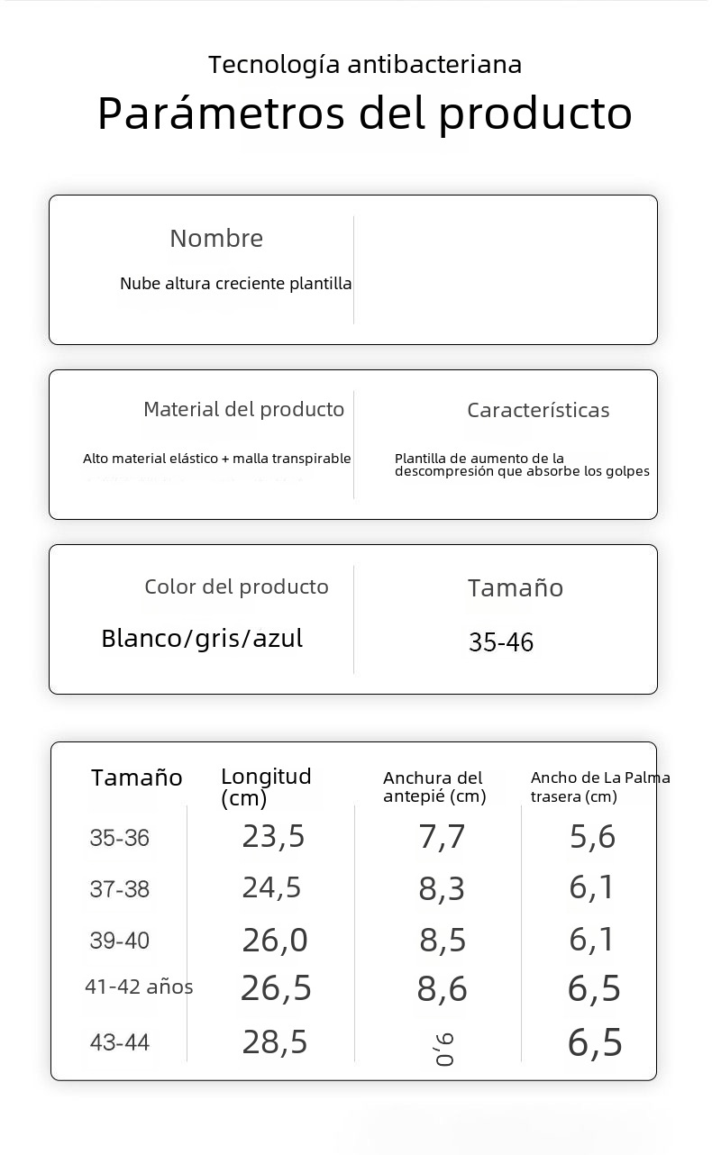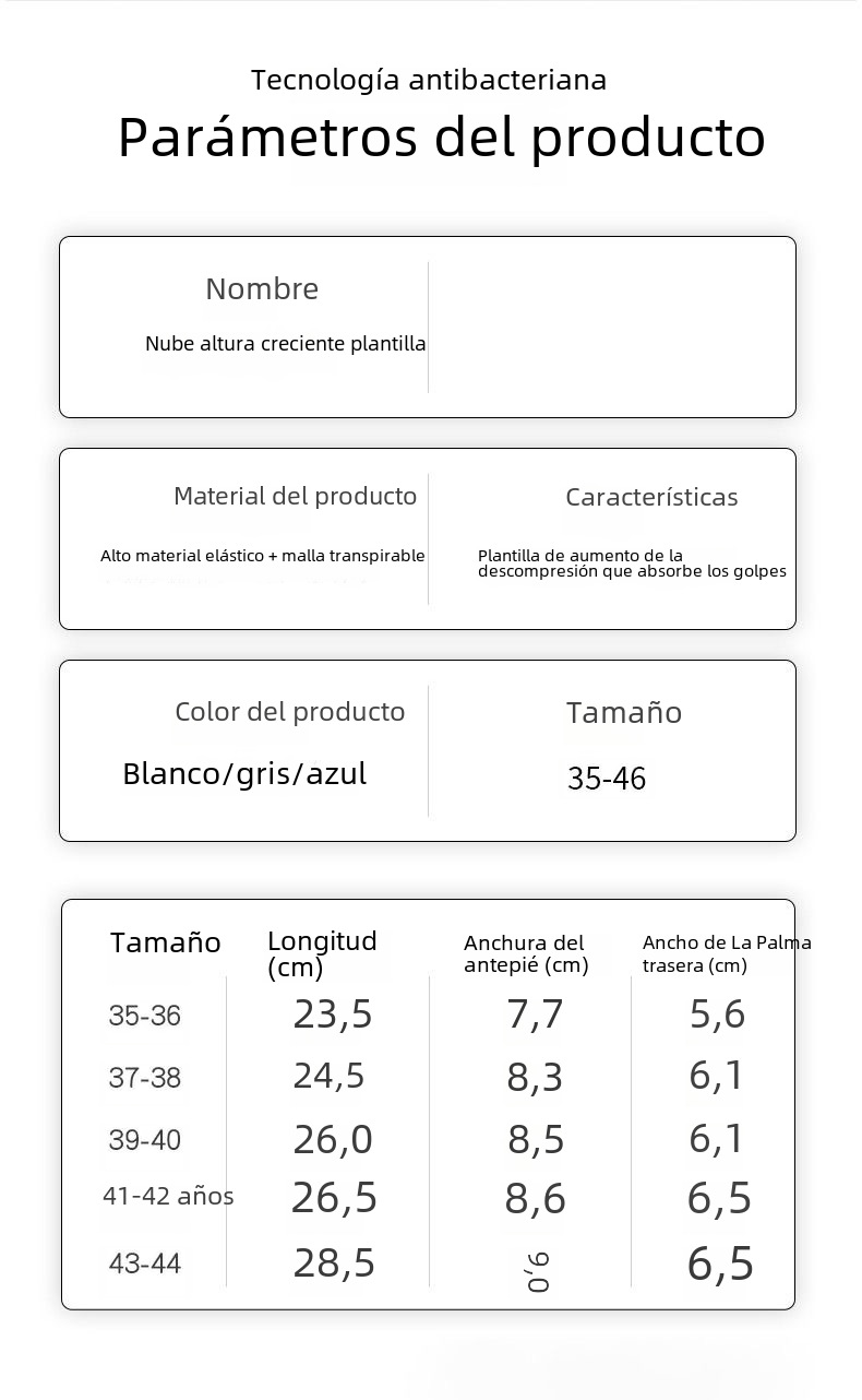| Tamaño de la plantilla | 35,36,39,38,40,41,42,43,44,45,46,37,34 |