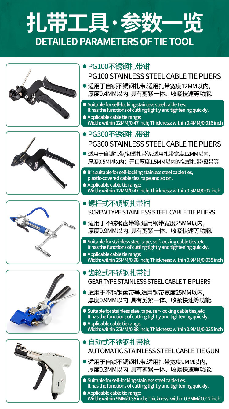 | Modelo | PG100 antiguo,PG100-Negro,PG100-Azul,PG100-Rojo,PG300-Negro,PG300-Rojo,PG300-Azul,Tipo de tornillo-azul,Tipo de tornillo-rojo,Tipo de tornillo-plata,Tipo de tornillo: naranja,Tipo de tornillo-negro,Tornillo de Alta Resistencia - Plateado,Tipo de trinquete-azul,Tipo de trinquete-rojo,Tipo de trinquete-negro,Pistola automática para bridas de cable - Blanca,Alicates de trinquete de mano,Pistola automática para bridas de cable - Negro |