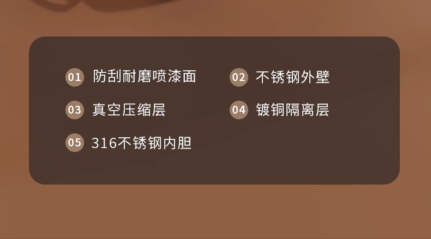 产品材质:内胆316不锈钢+外壳304不锈钢