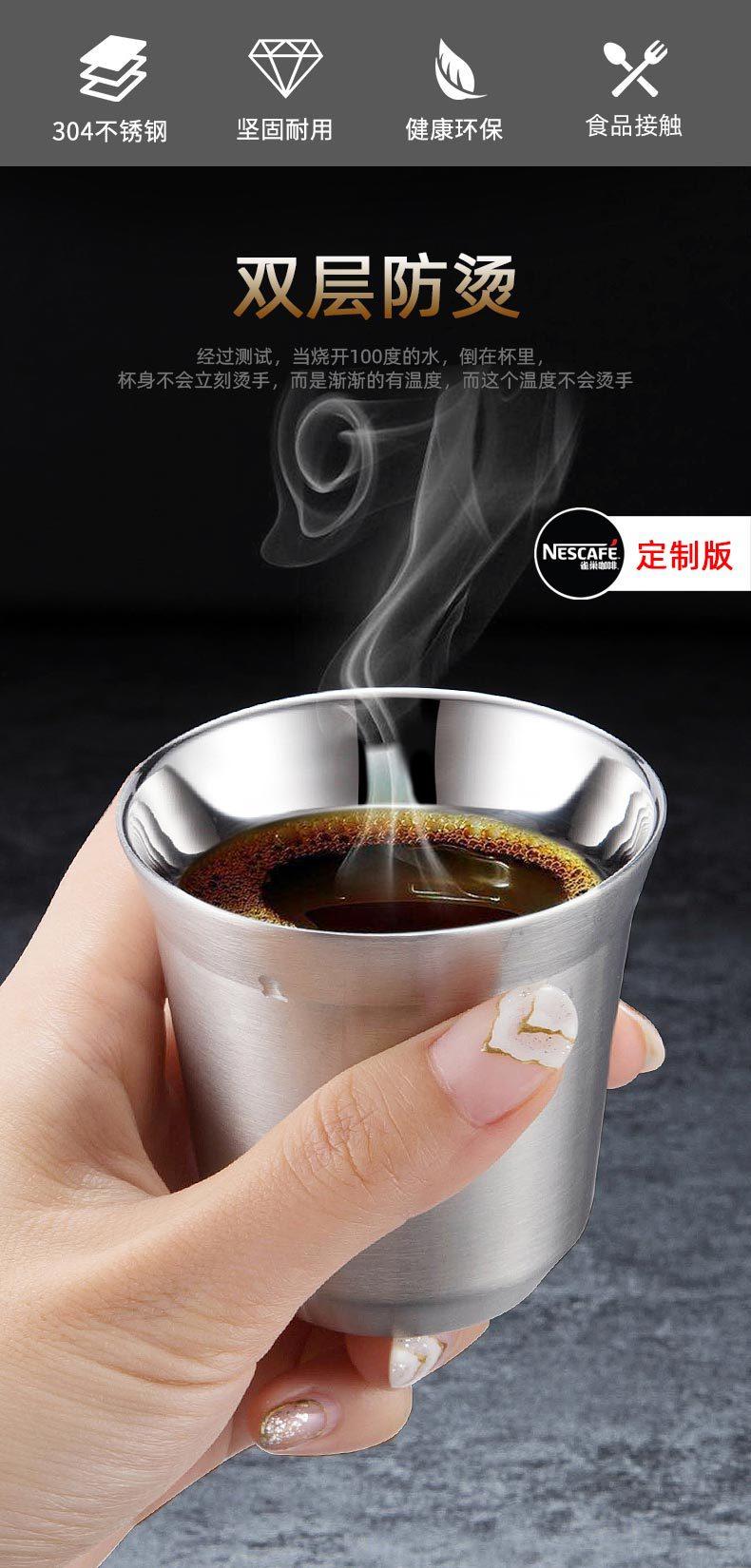 | Número de artículo | Taza de doble pared de acero inoxidable. |