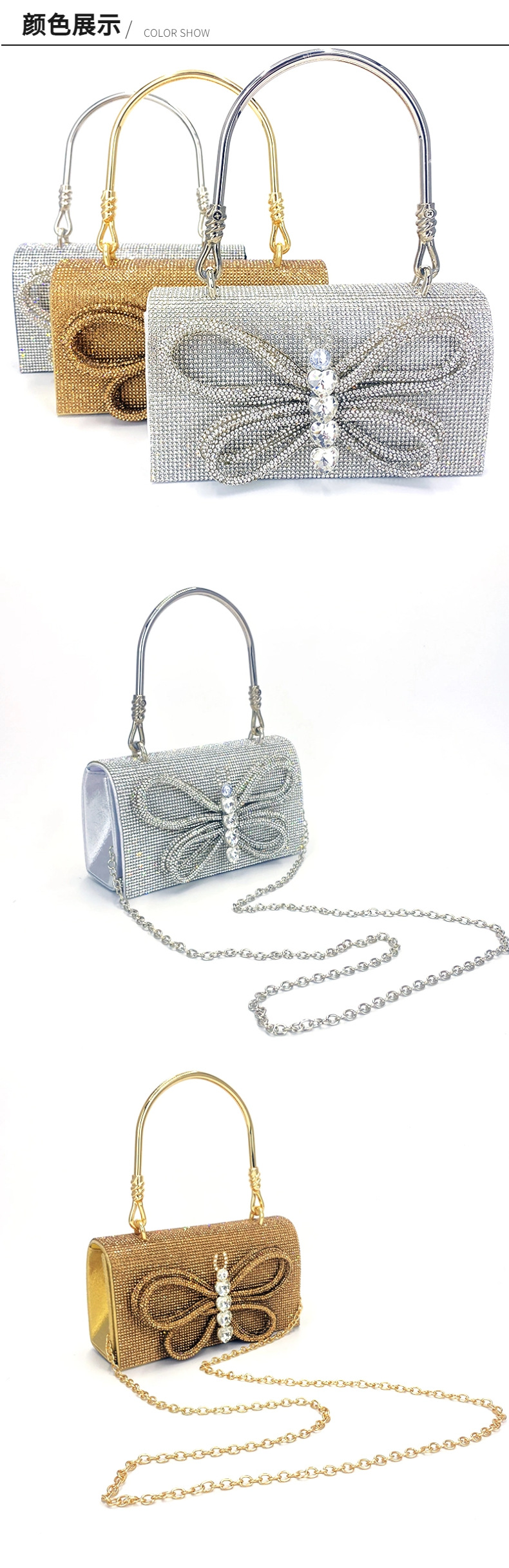 Comercio exterior e-commerce nuevo bolso de noche bolsa de vestir mariposa brillante diamante-incrustado pequeño bolso cuadrado bolsa de cadena bolsa de embrague bolsa de fiesta