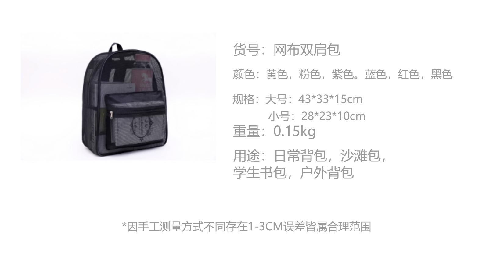 Mochila de malla de alta carga transparente simple bolsa de playa mochila escolar para niños Temu generación CPC certificación