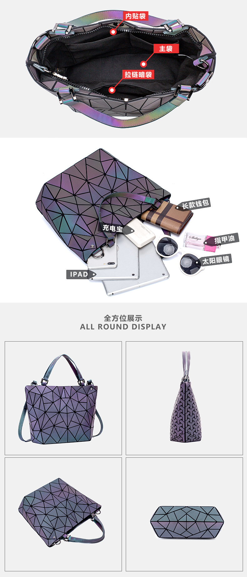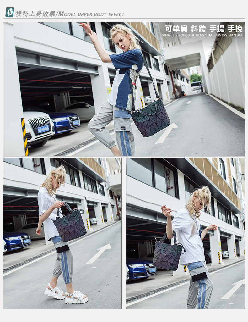 Estilo japonés rombo geométrico mochila mujer fresco nueva moda láser de gran capacidad mochila mujer estudiante mochila