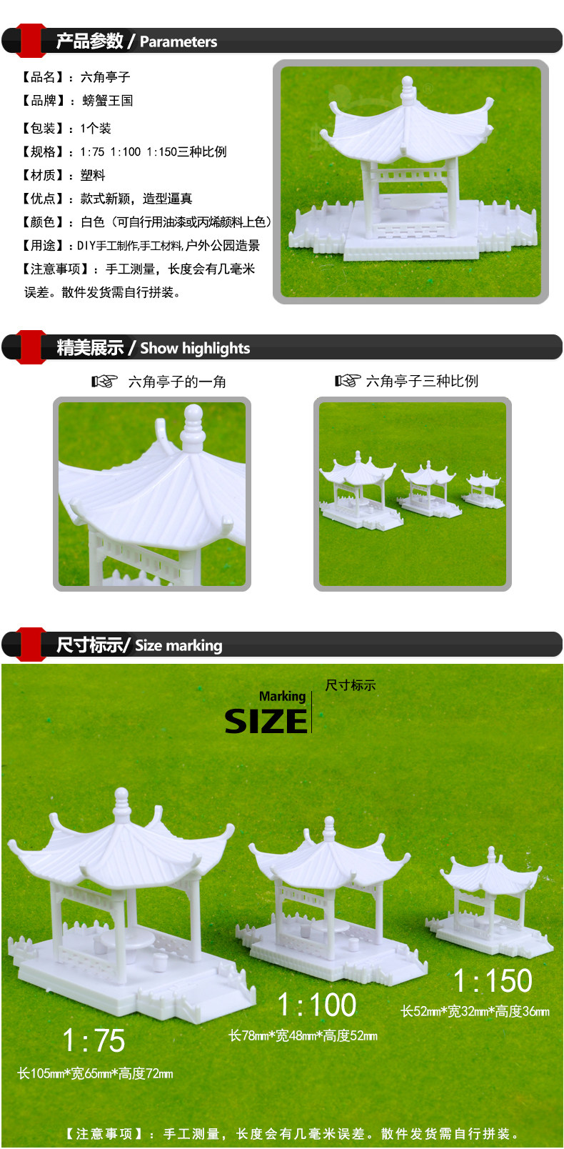 | Color | Pabellón hexagonal ensamblado 1:75,Pabellón hexagonal montado 1:100,Pabellón hexagonal montado 1:150 piezas,Pabellón redondo montado 1:100 piezas,Pabellón redondo montado 1:150 piezas,Montaje del Pabellón de cuatro esquinas 1:75,Pabellón ensamblado de cuatro esquinas 1:100,Un pabellón de cuatro esquinas (57mm de alto),Un pabellón octogonal de tamaño pequeño (46mm de alto) |