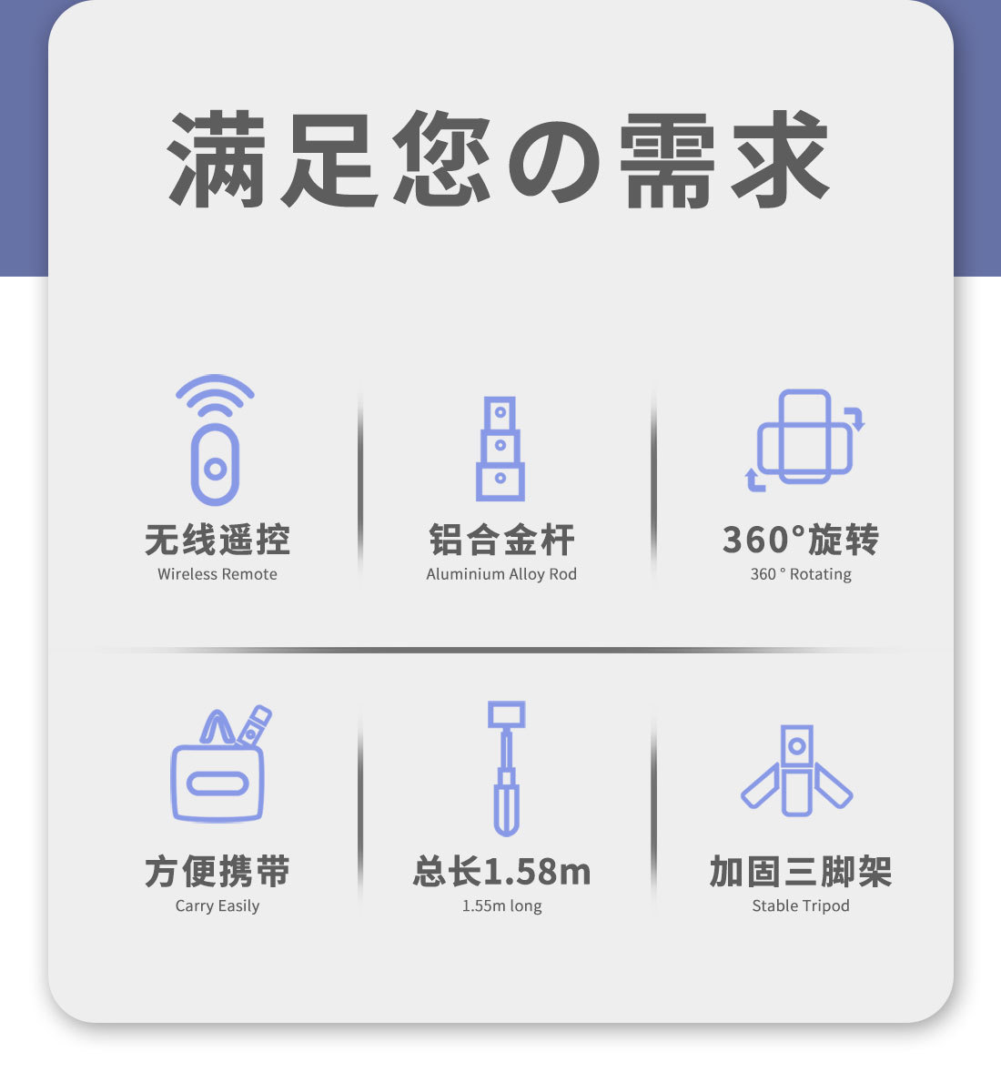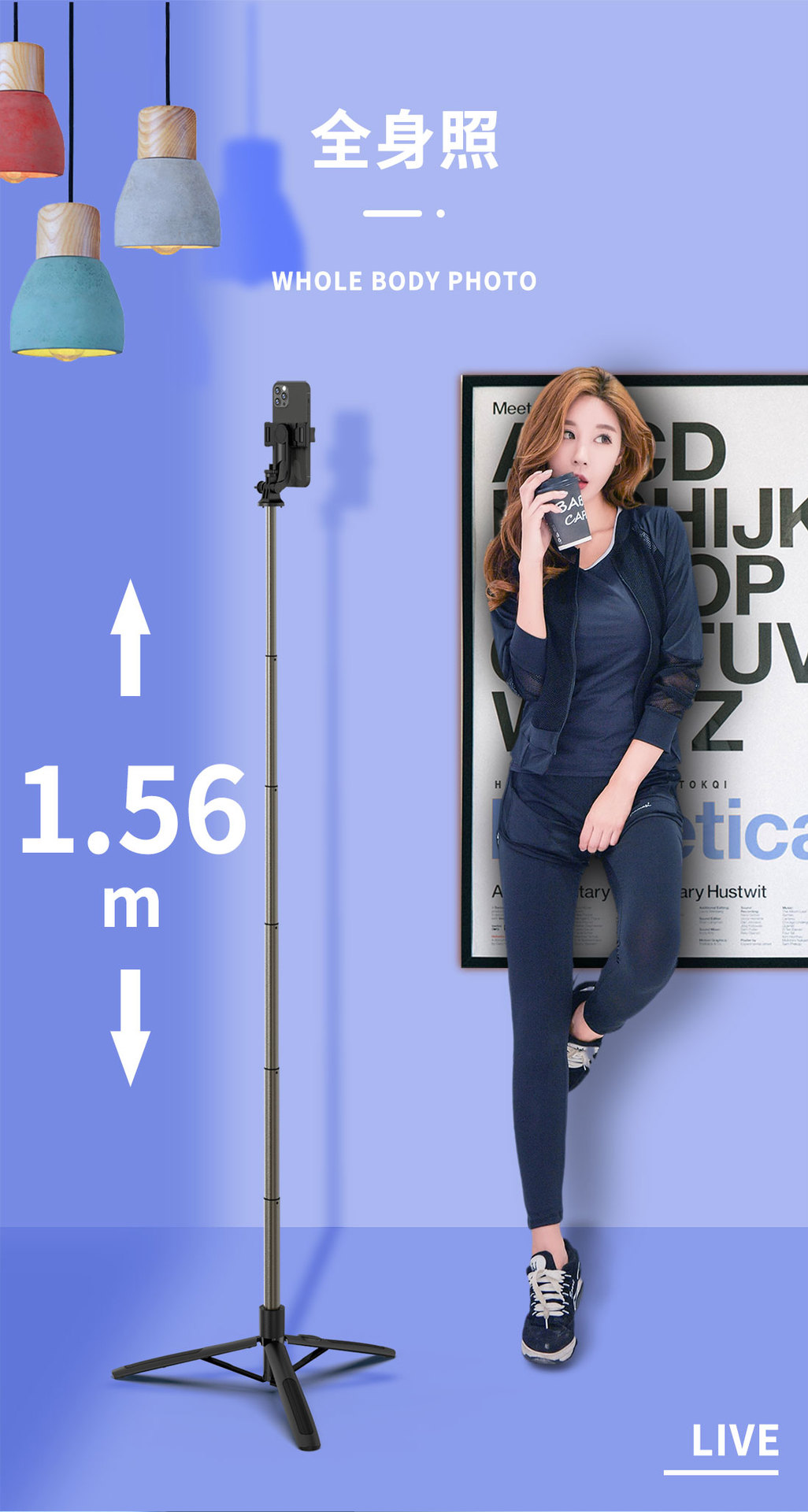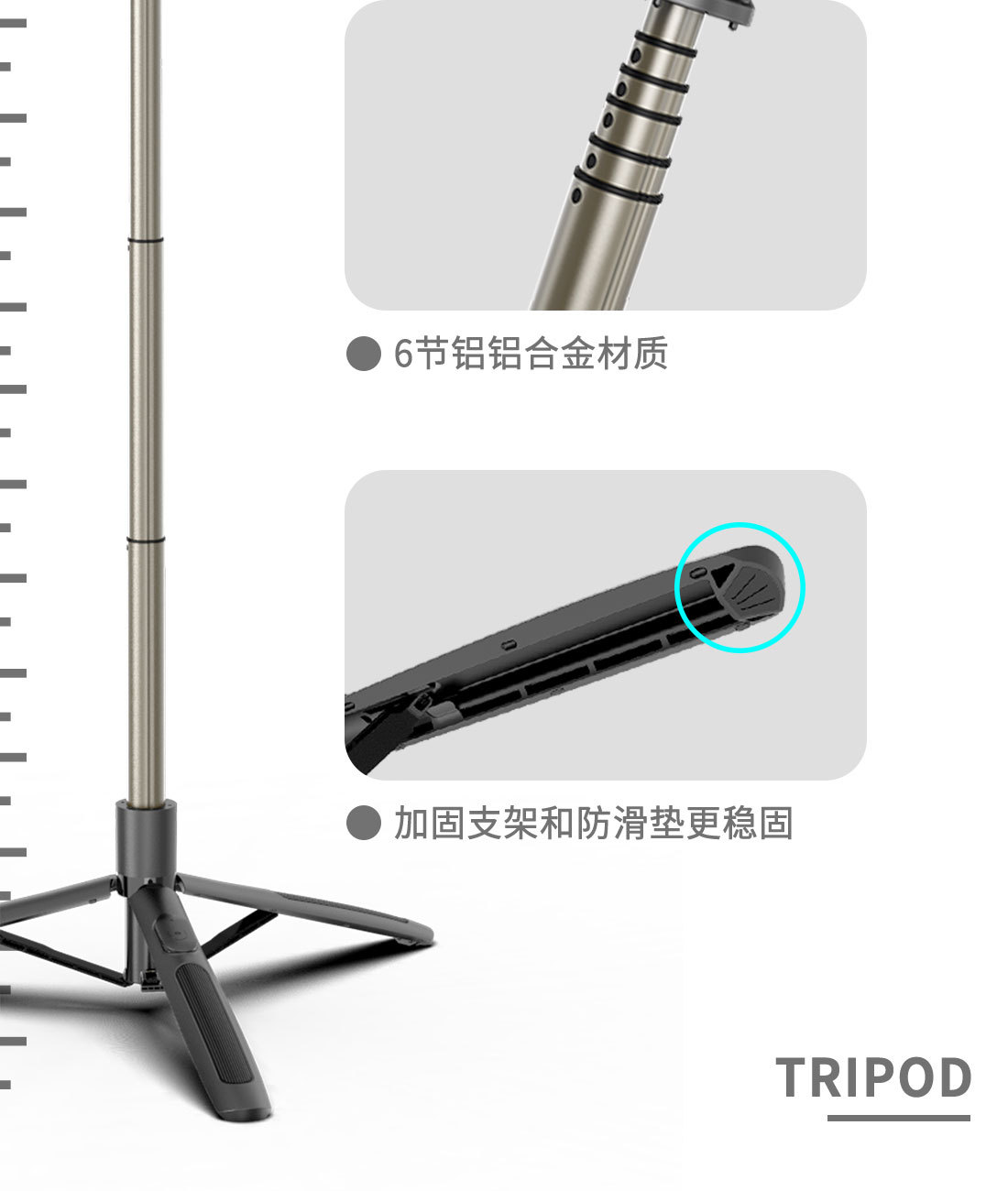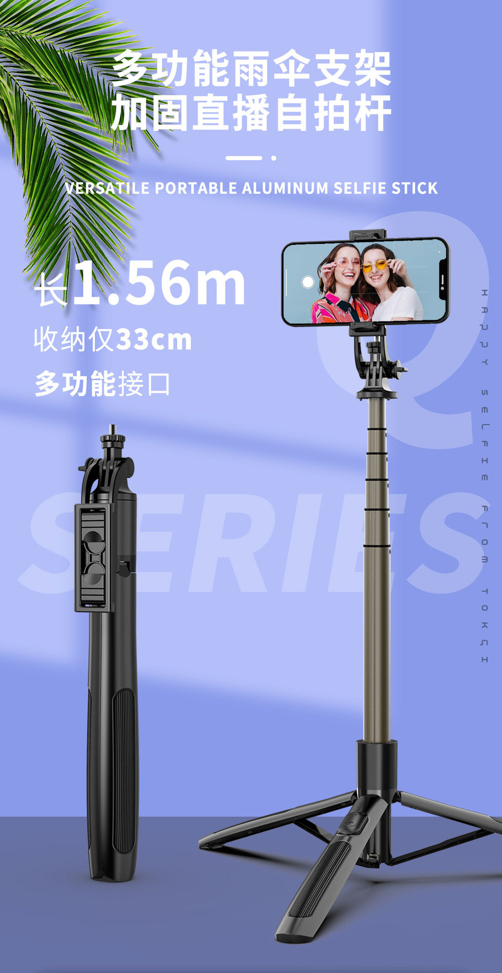 Q06 多功能加固铝合金直播 蓝牙三脚架自拍杆(1560mm)