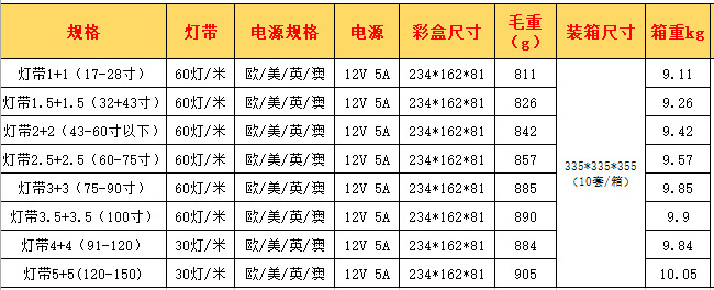 | Temperatura de color | TV por computadora de 17-28 pulgadas (60 luces),Televisión por computadora de 32-43 pulgadas (60 luces),Televisión por computadora de 43-60 pulgadas (60 luces),TV por computadora de 60-75 pulgadas (60 luces),TV de computadora de 75-90 pulgadas (60 luces),TV de computadora de 90-100 pulgadas (60 luces),TV por computadora de 100-120 pulgadas (30 luces),TV de computadora de 120-150 pulgadas (30 luces),2.1 Nueva versión mejorada de TV por computadora de 32-43 pulgadas (60 luces),2.1 Nueva versión mejorada de TV por computadora de 43-60 pulgadas (60 luces),2.1 Nueva versión mejorada de TV por computadora de 60-75 pulgadas (60 luces),2.1 Nueva versión mejorada de TV por computadora de 75-90 pulgadas (60 luces),2.1 Nueva versión mejorada de TV por computadora de 90-120 pulgadas (30 luces),2.1 Nueva versión mejorada de 150 pulgadas o más |