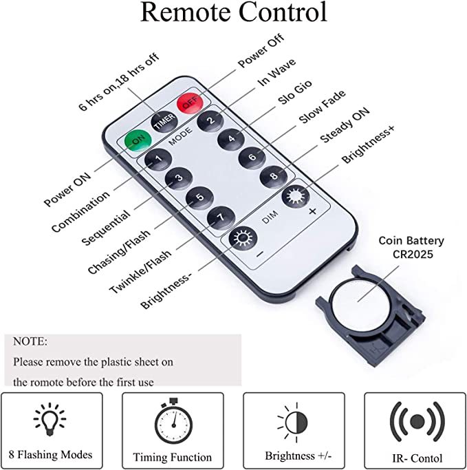 | Especificaciones | [Control remoto USB de 8 funciones],[Control remoto de caja de batería impermeable de 8 funciones],[8 funciones solares],[Caja de batería impermeable cilíndrico de 8 funciones],Universal en el país y en el extranjero [enchufe plano] 8 funciones con control remoto,Especificación europea [enchufe redondo] 8 funciones con control remoto |