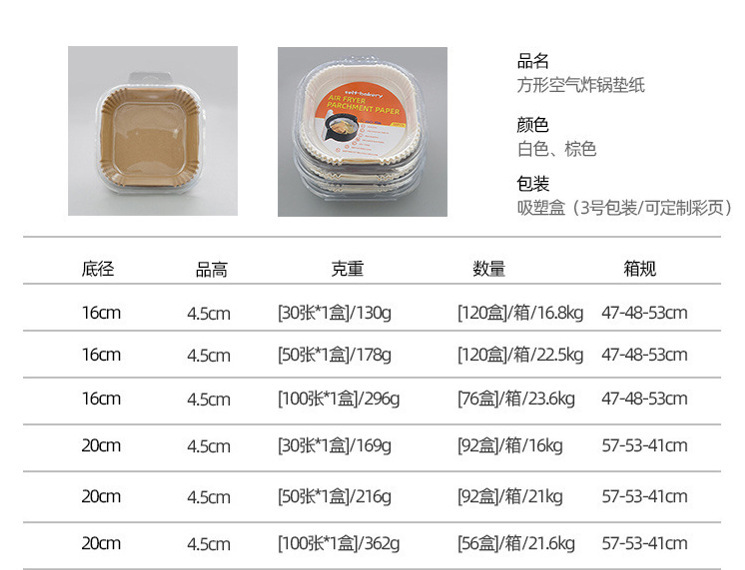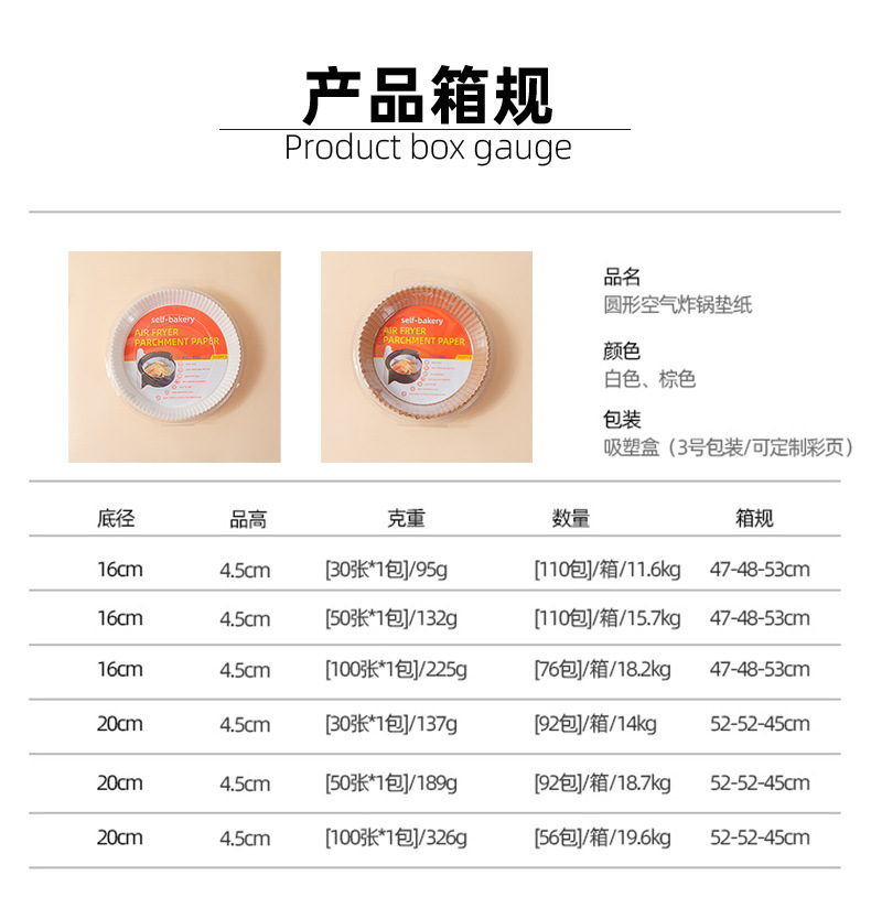 | Ventaja 1 | Papel de freidora de aire personalizable |