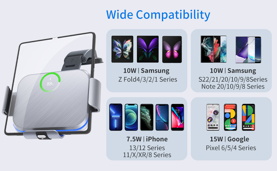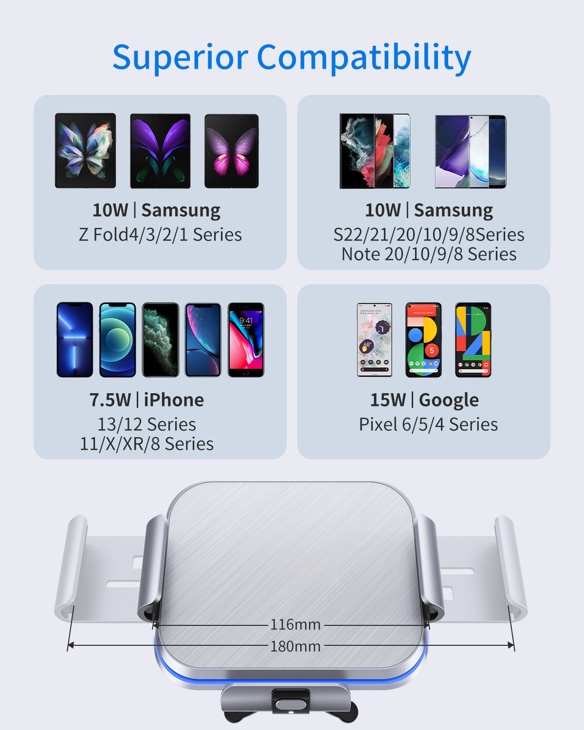 KC认证 线圈感应爆款智能感应车载无线充电器适用于三星 Z fold 6/5/4/3/2/1 折叠屏手机车载无线充电器