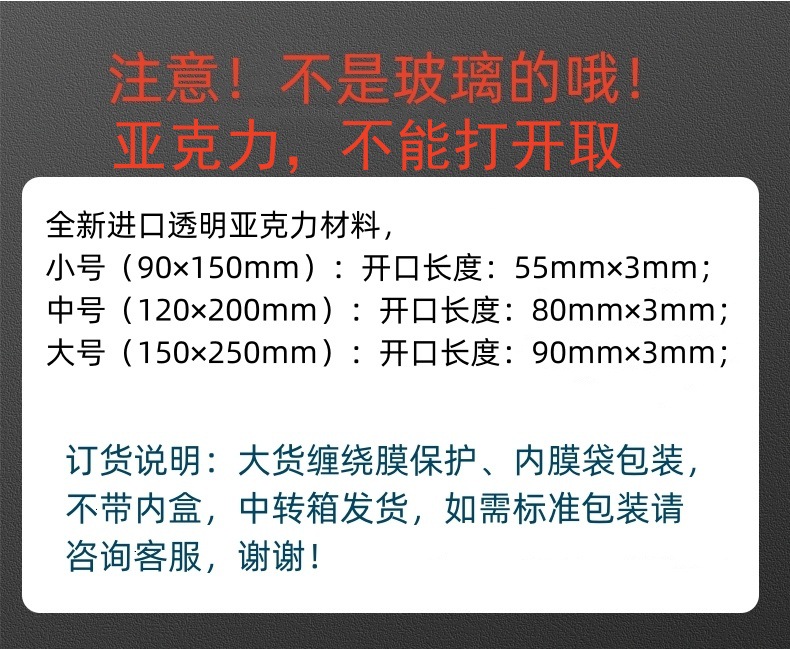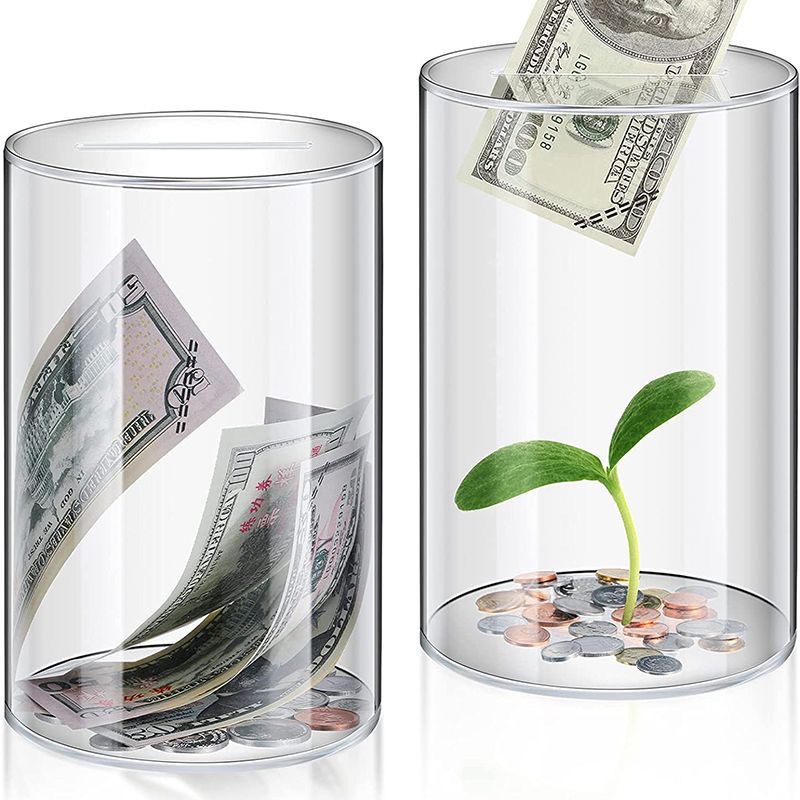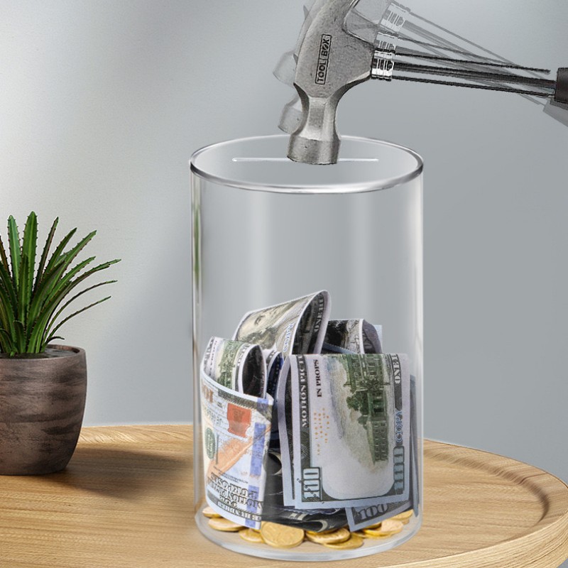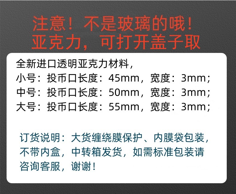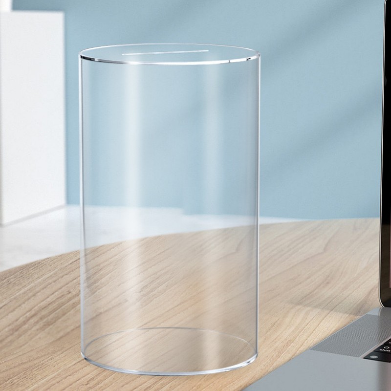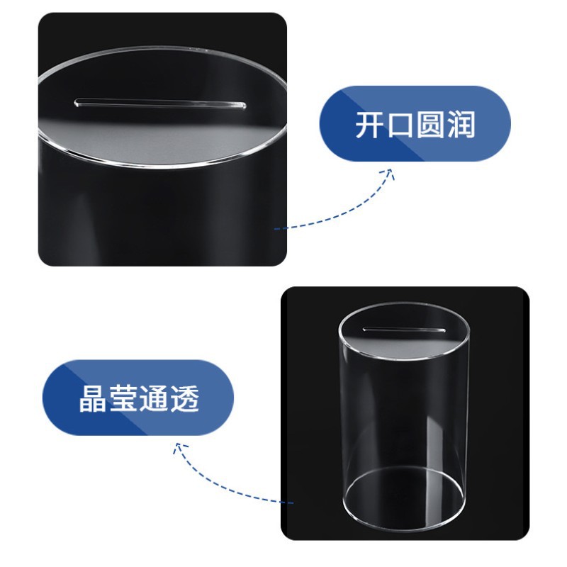 全新进口亚克力存钱罐,尺寸直径10CM高15CM,只存不出,开口是宽5mm*长80mm